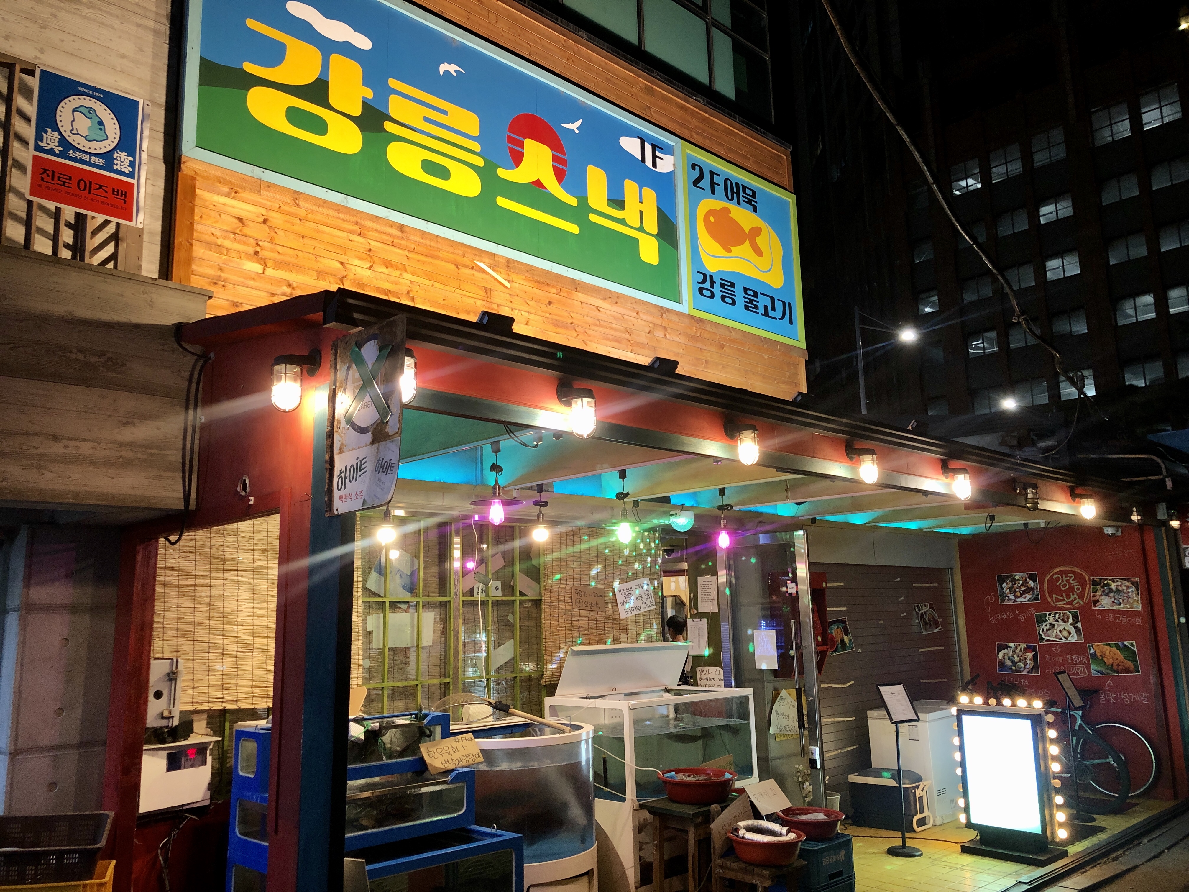 그리고 이곳은 해산물이 주 메뉴이며 유명한데, 가게 앞에 어항을 비롯해 조개와 산낙지까지 전시되어 있습니다.