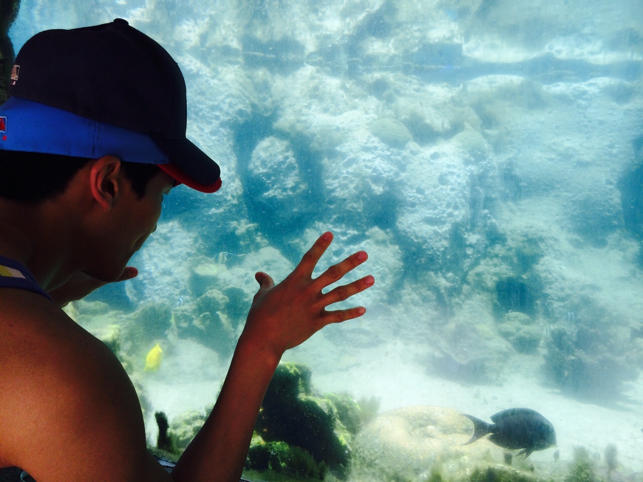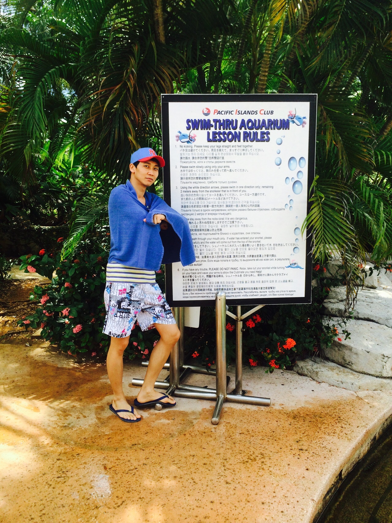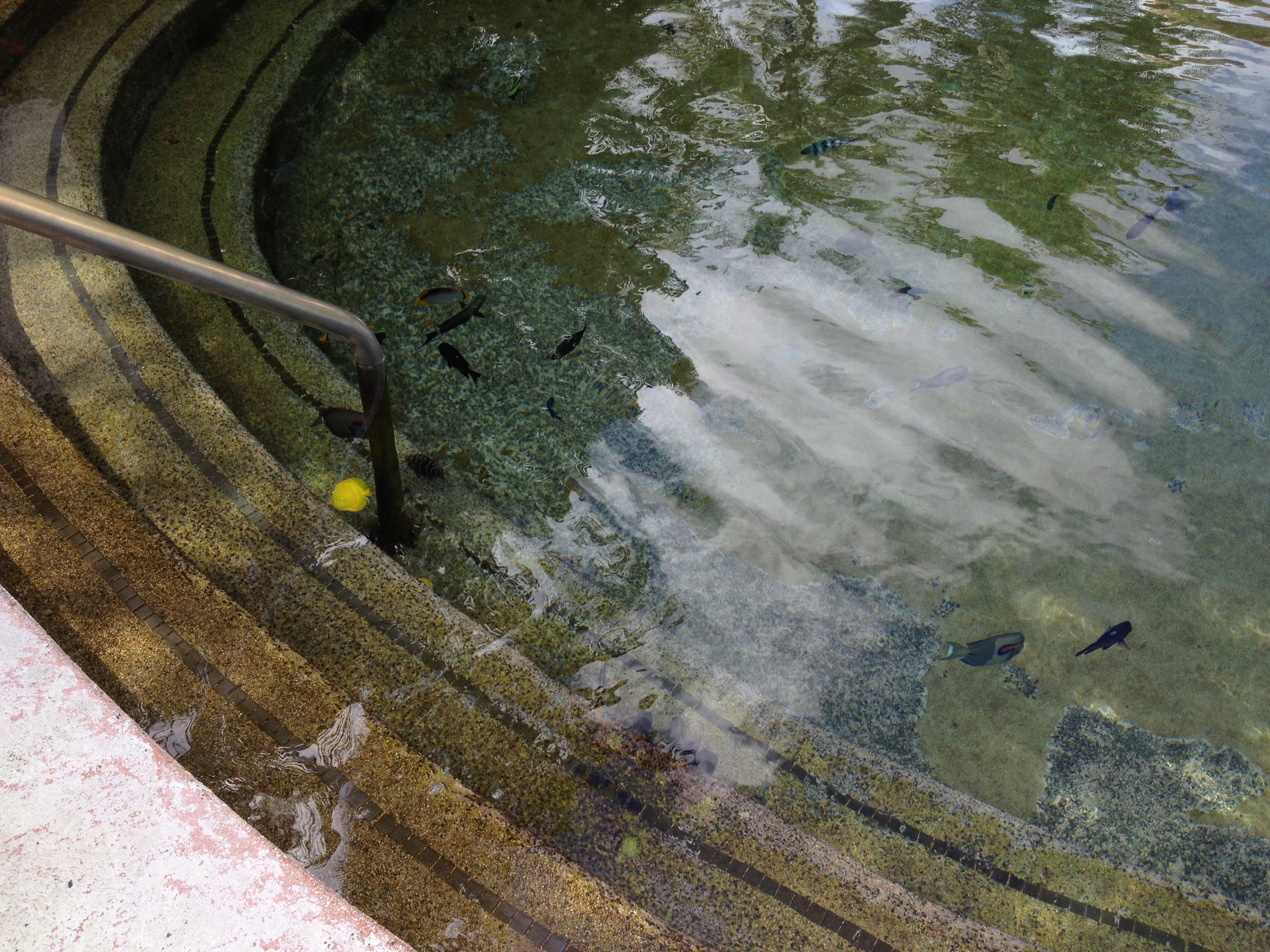 첫번째로 열대어가 살고 있는 인공아쿠아리움을 구명조끼와 수영신발을 신고 체험하는 액티비티를 했는데