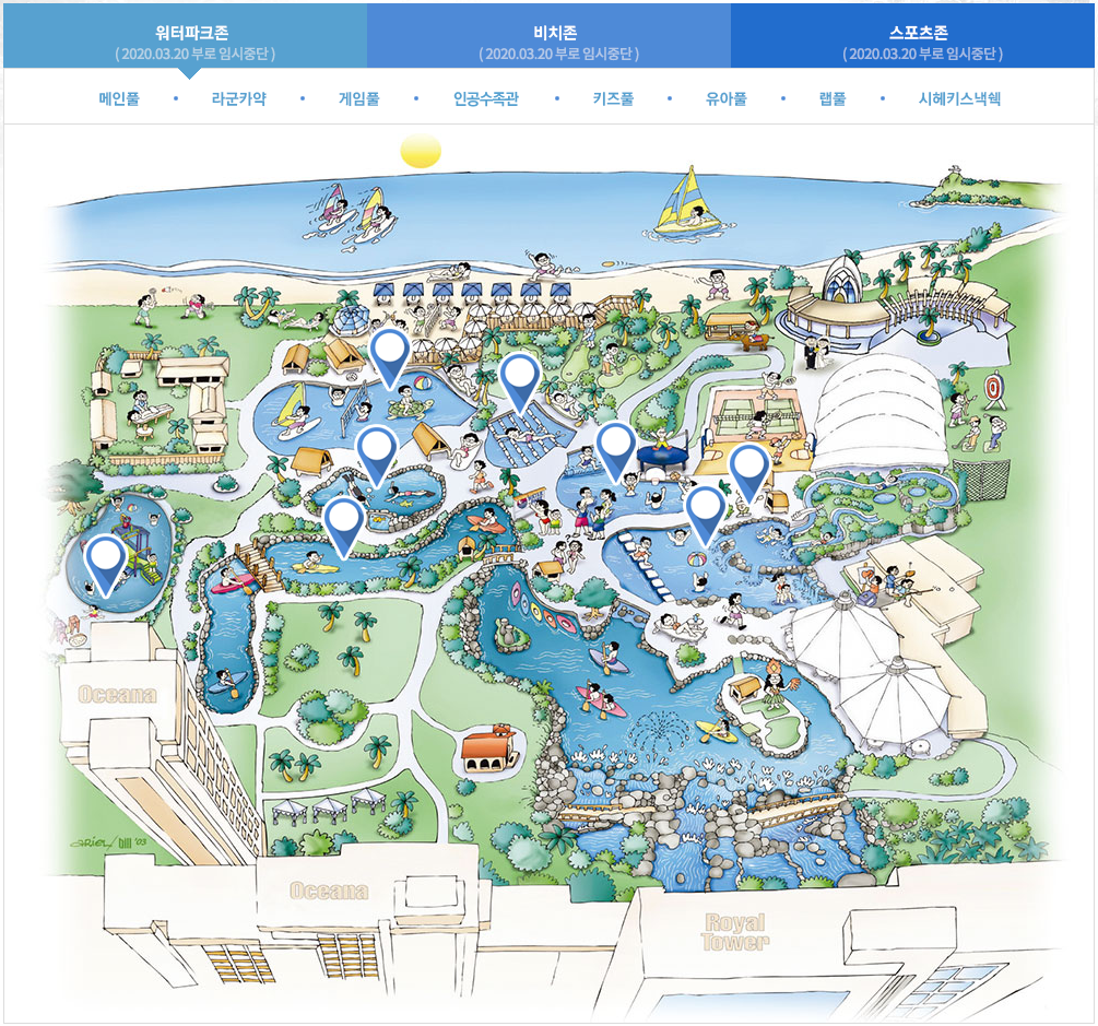 PIC리조트에는 클럽메이트라는 직원들이 있어서 워터파크에 짜여진 프로그램이 있어 부모님들이 아이들을