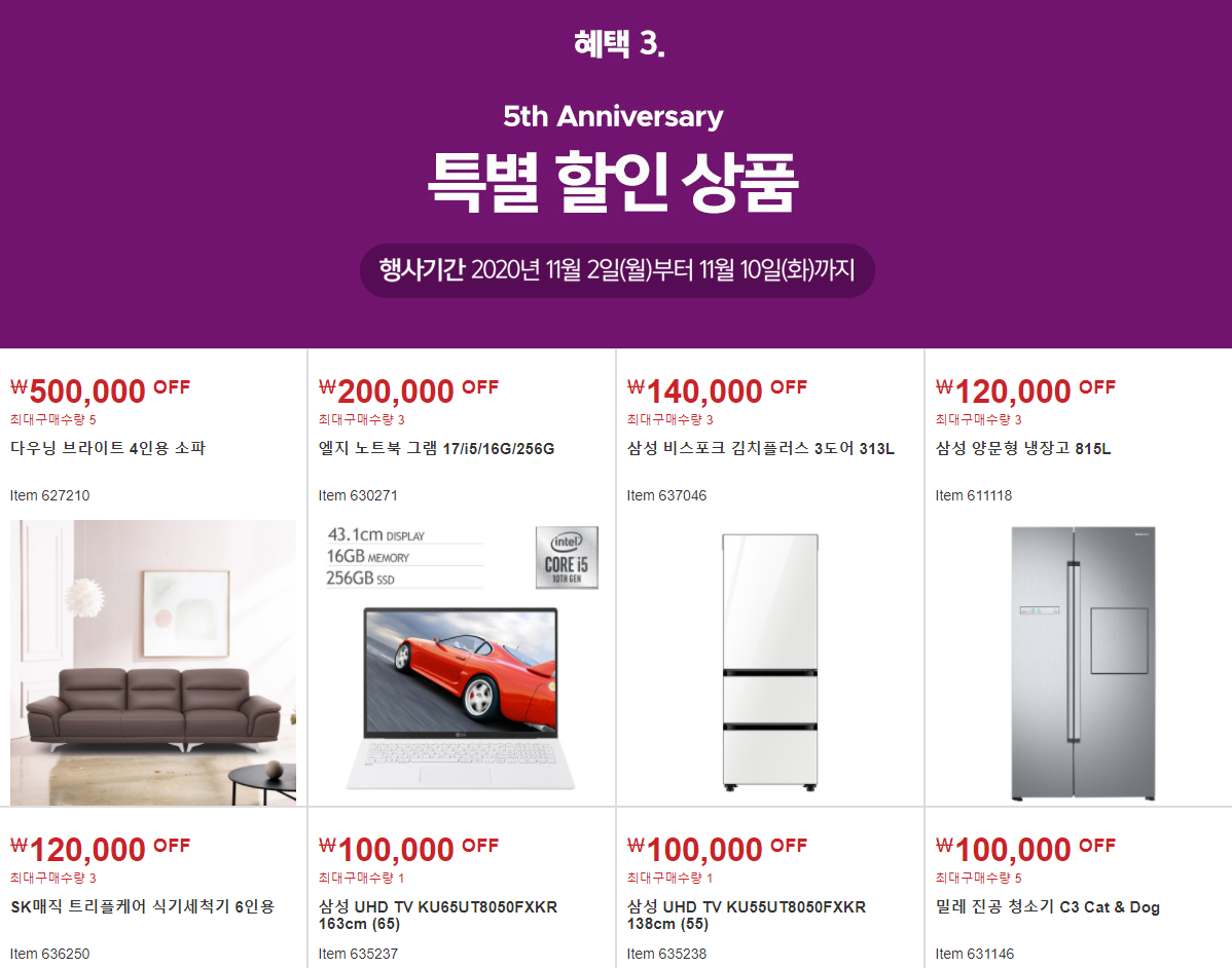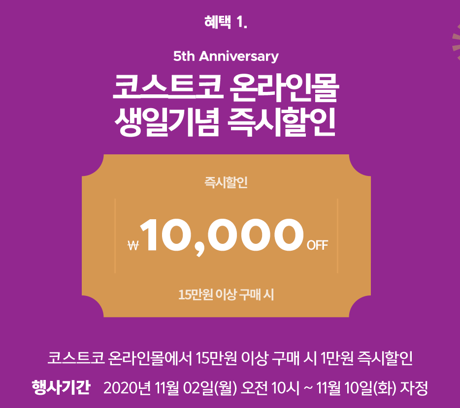 코스트코에서는 11/2~11/10 동안 아래 코스트코 온라인몰 5주년 기념 할인 이벤트를 진행하고 있습니다.