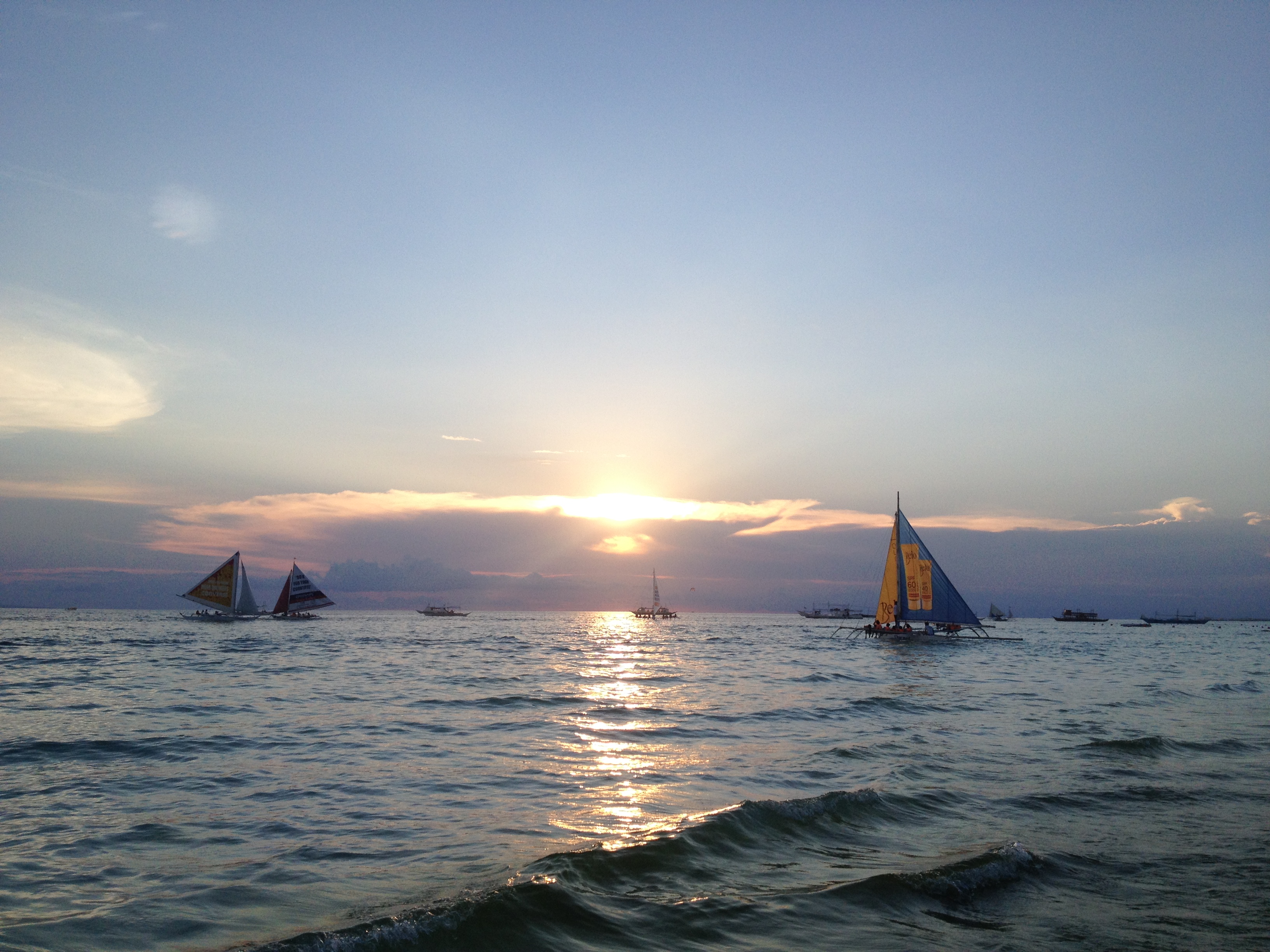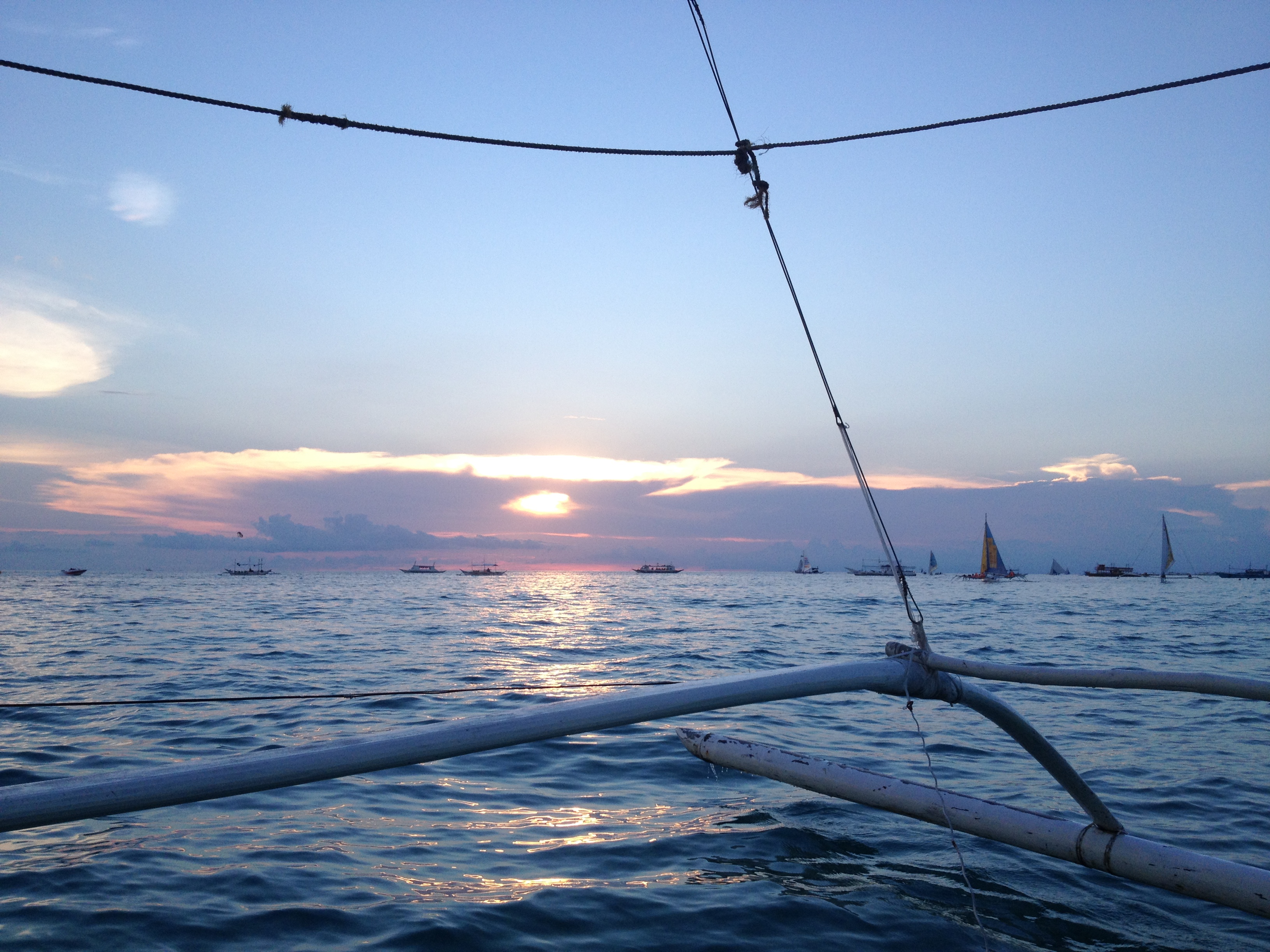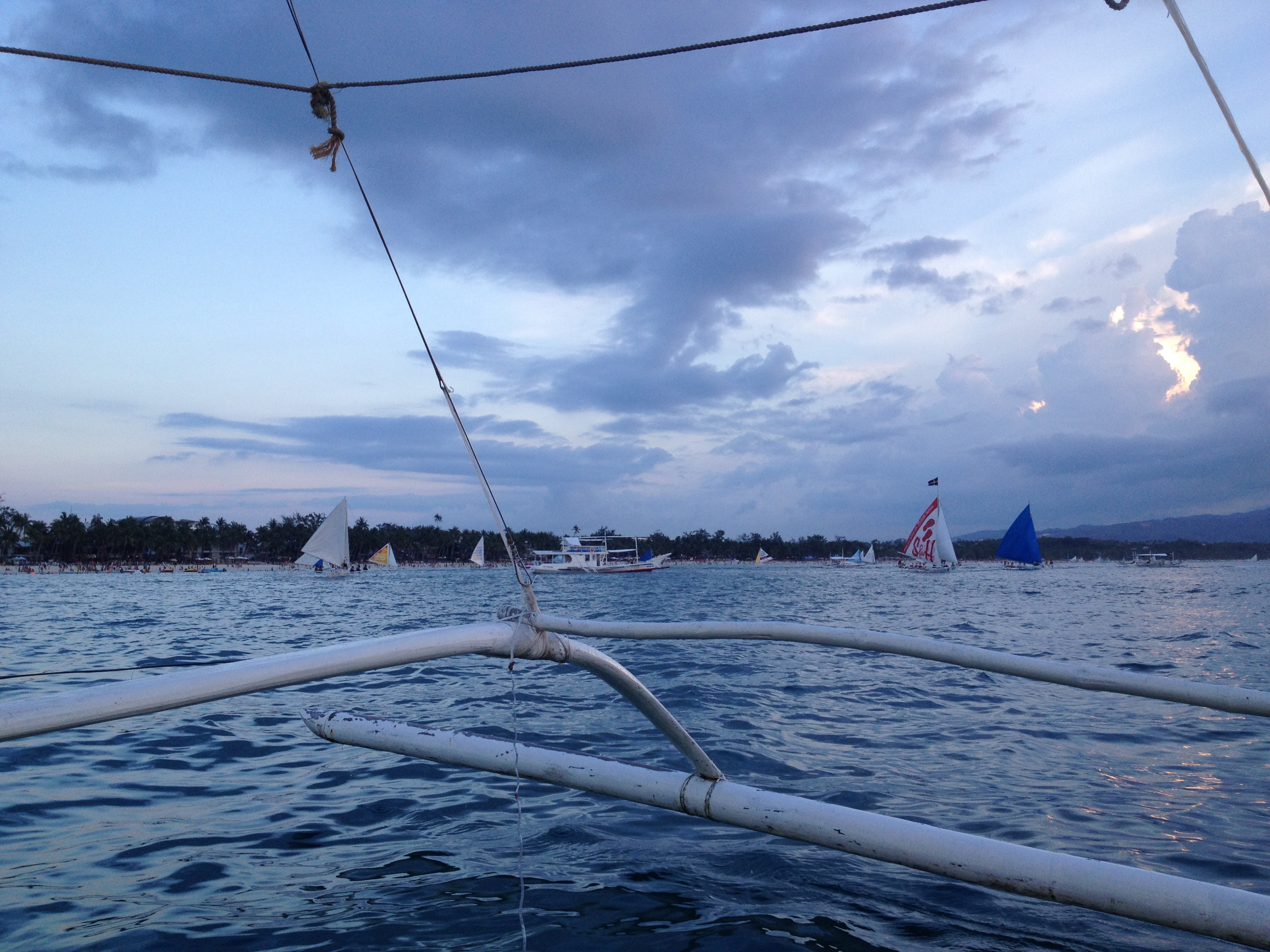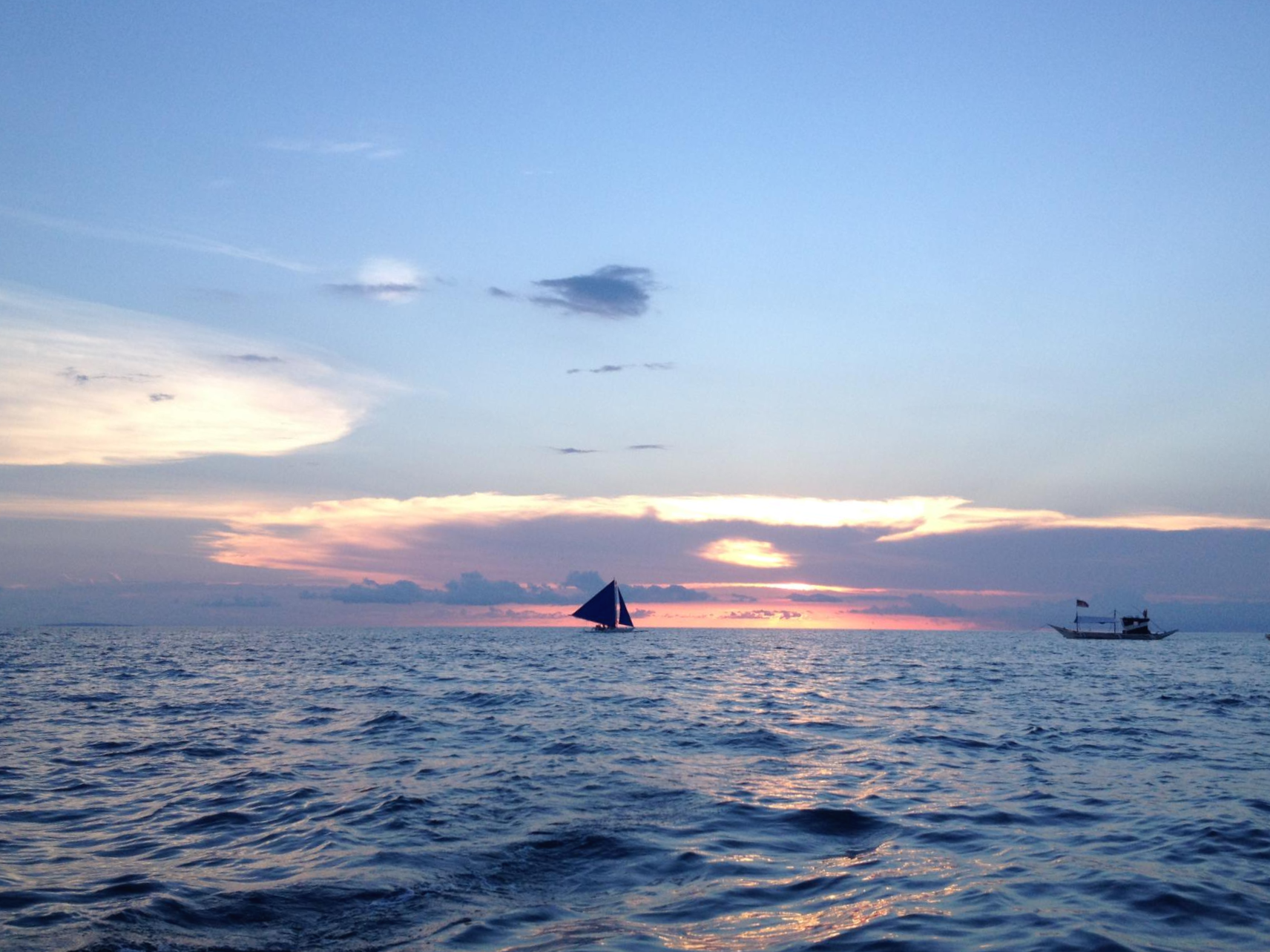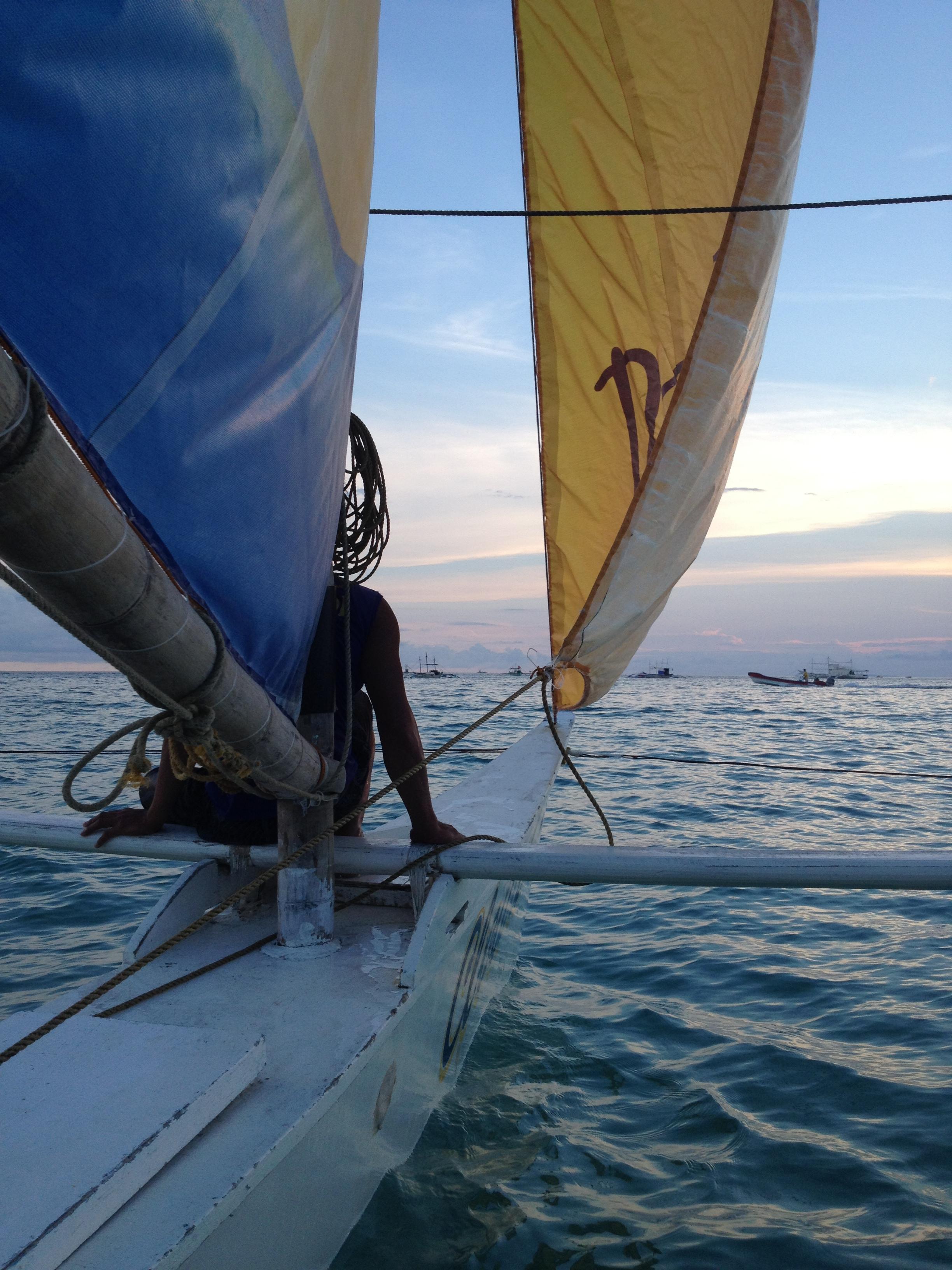 배를타고 바다에 나가 보라카이의 일몰을 보기 위해 세일링보트 상품을 예약하였습니다.