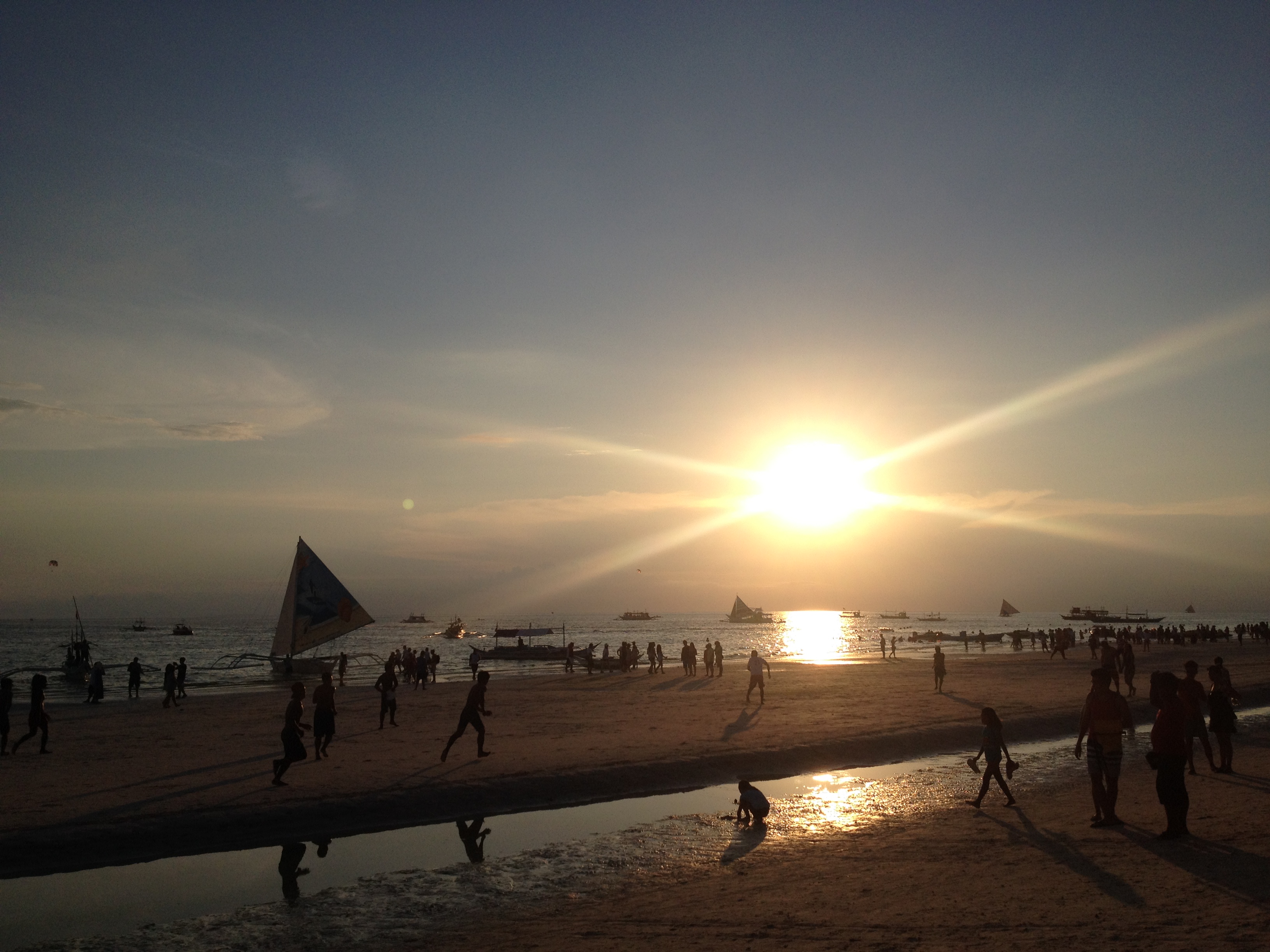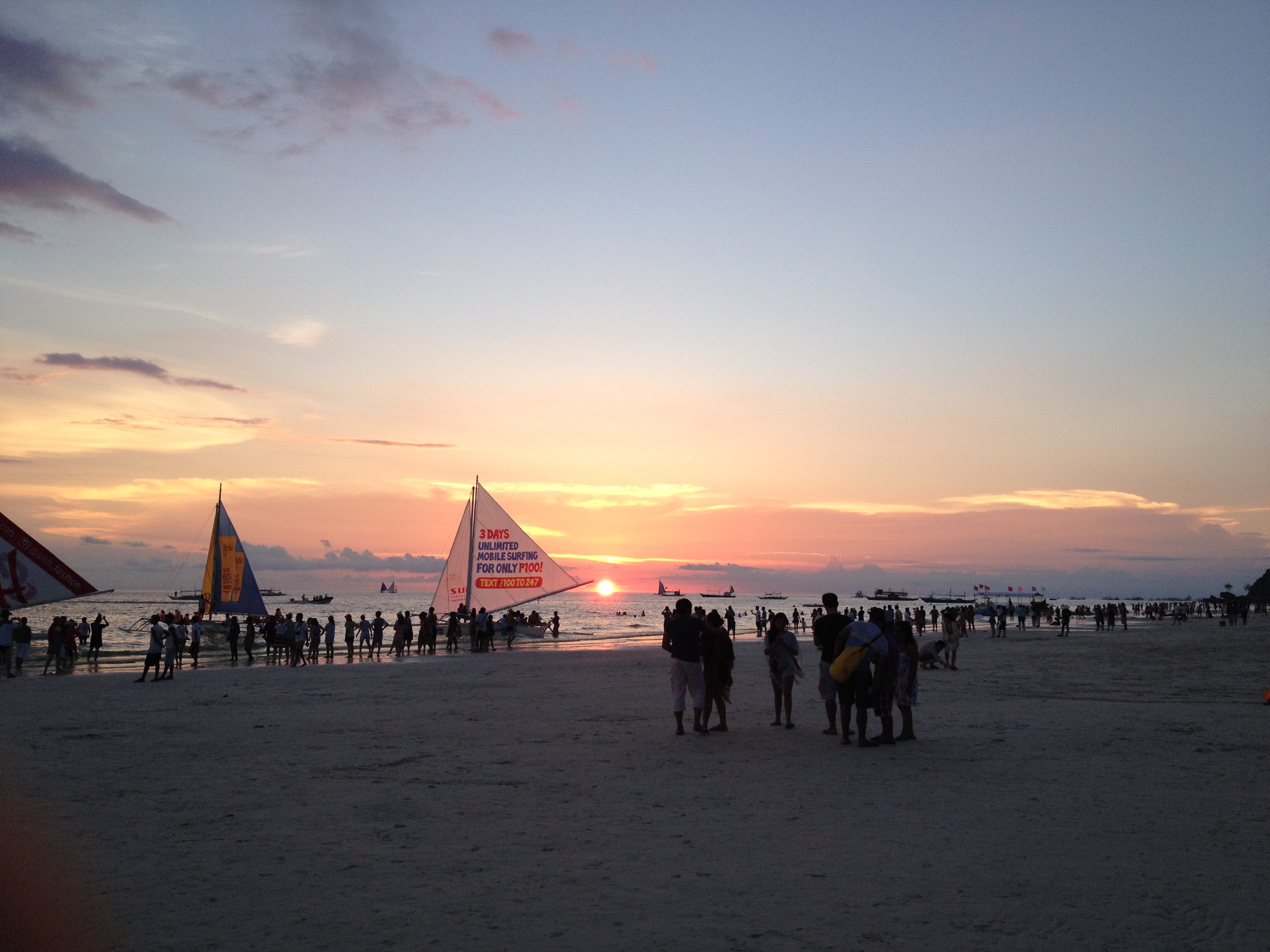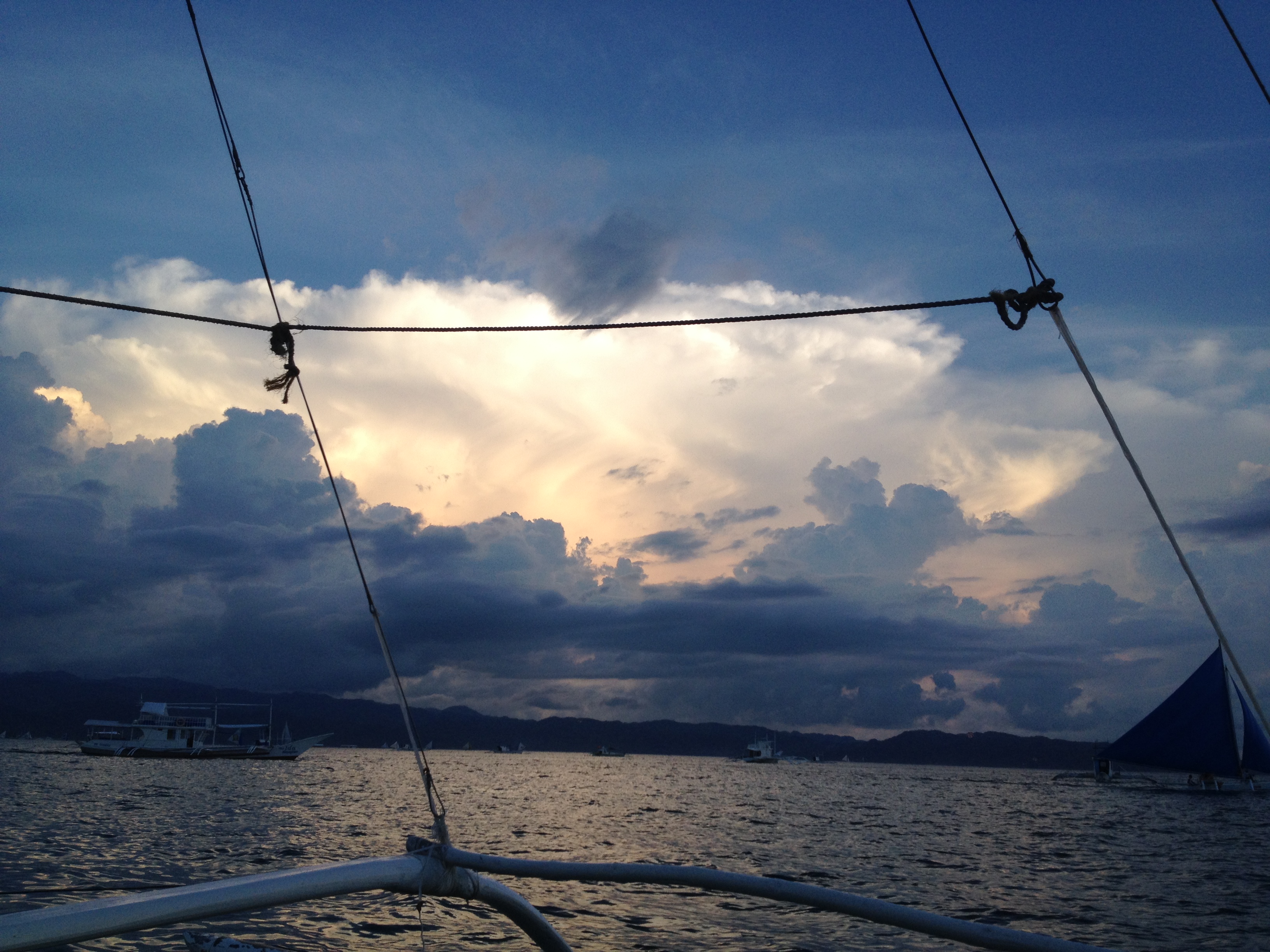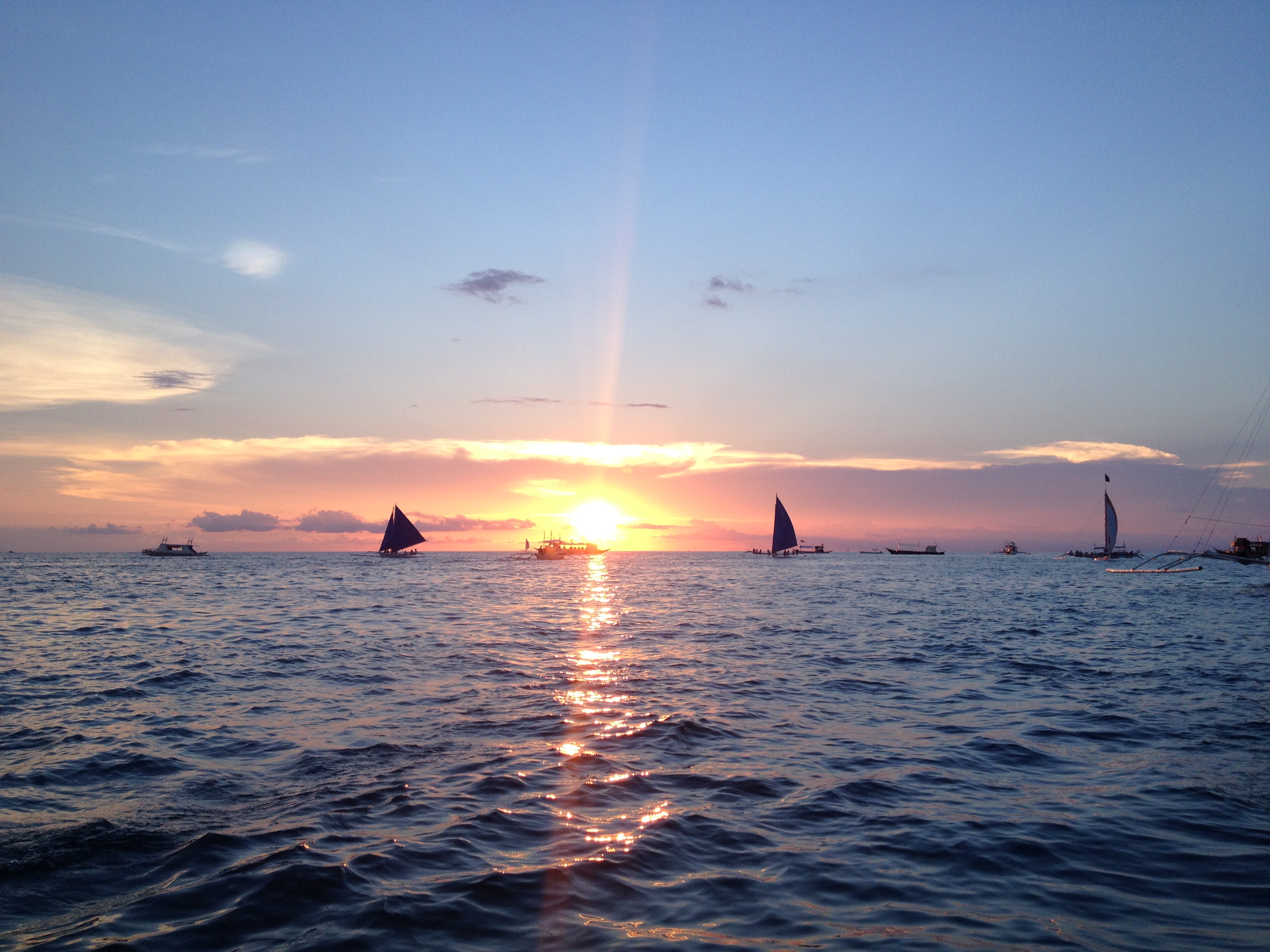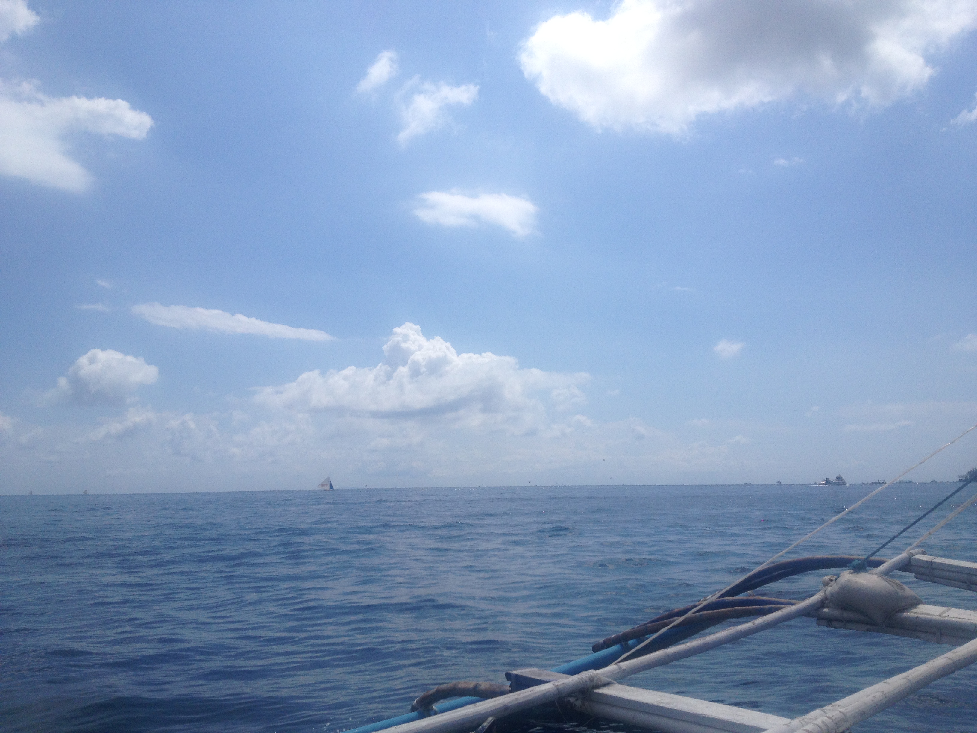 배를타고 바다에 나가 보라카이의 일몰을 보기 위해 세일링보트 상품을 예약하였습니다.
