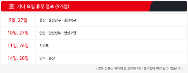 마지막으로 12월 11일과 12월 26일 휴무 점포는 서귀포 홈플러스 입니다.
