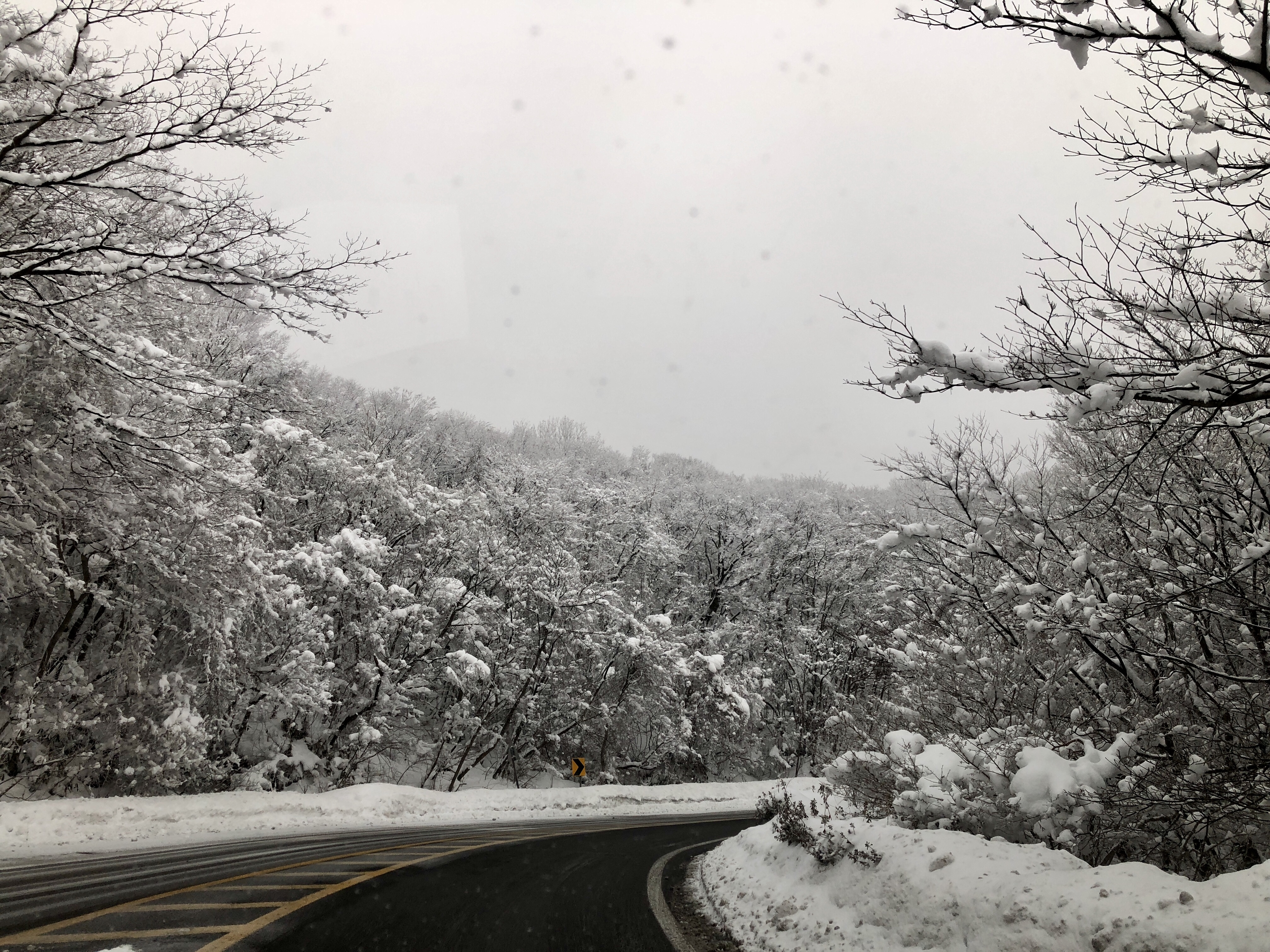 그런데 차로 조금씩 올라가다보니 전망대가 나타나고 전망대 옆 산비탈길로 눈이 보이기 시작하며