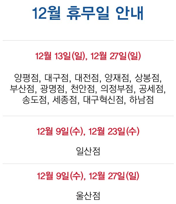 12월 이마트 휴무일 안내