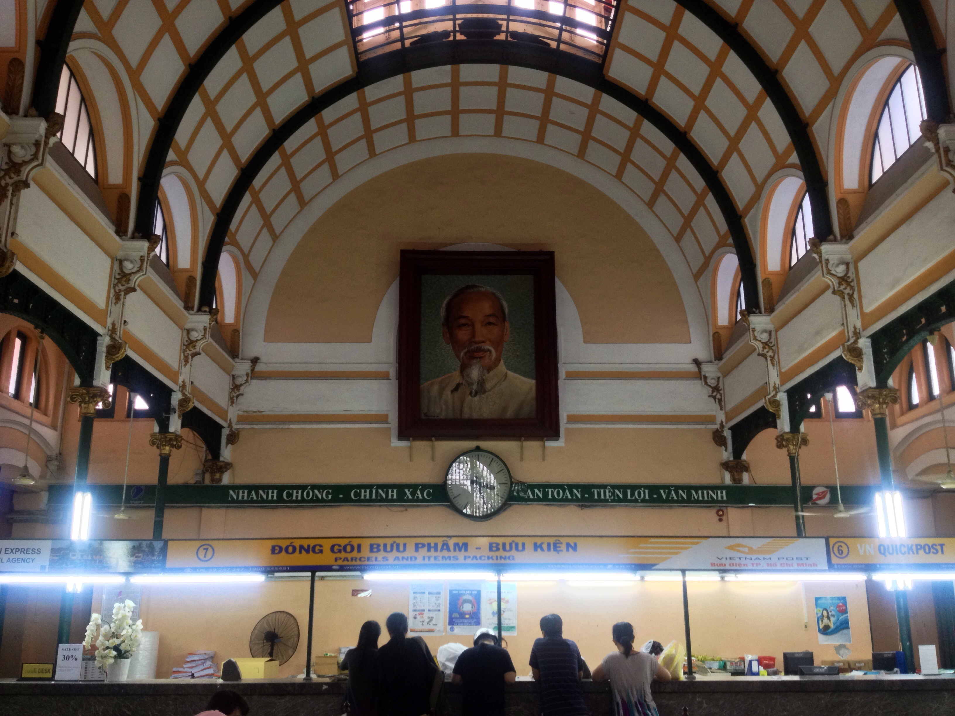 현재 베트남에서 가장 큰 우체국으로, 안으로 들어가면 중앙에 커다란 호치민 사진이 걸려 있었습니다.