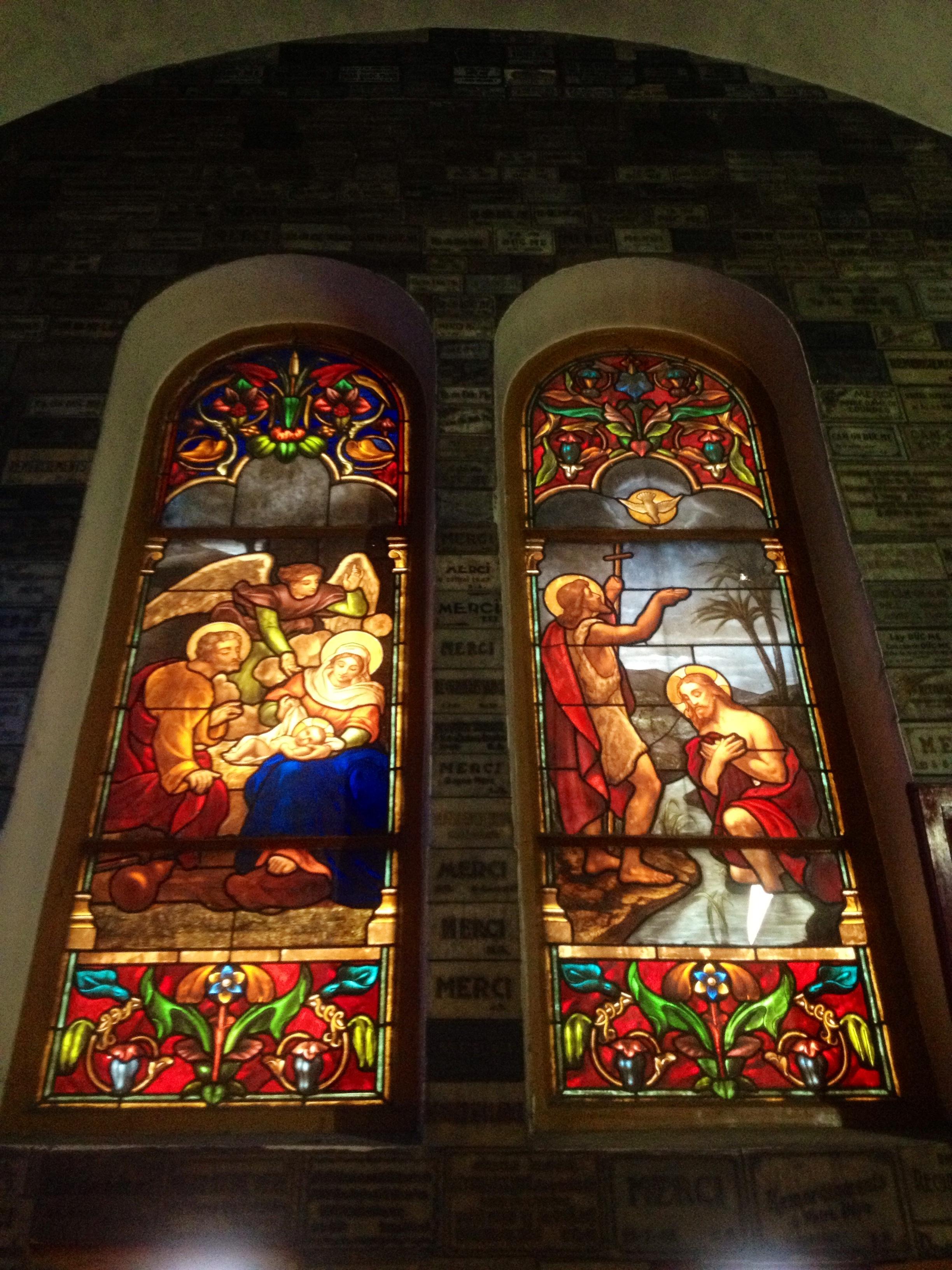 반면에 화려한 스테인드글라스를 거의 사용하지 않았으며, 성당 정면에는 성모 마리아 상이 있습니다.