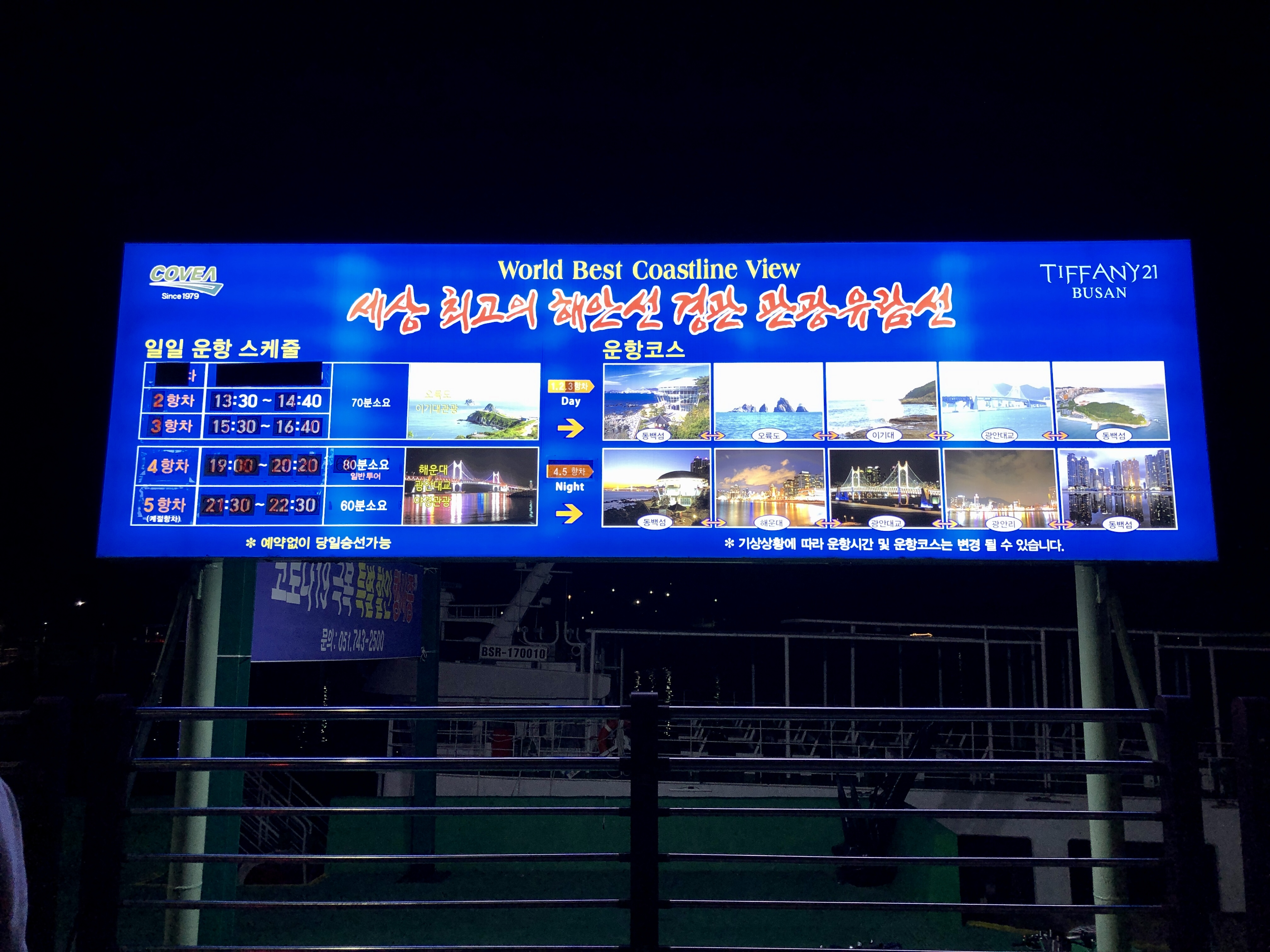 멀리서 반짝이는 웨스틴조선호텔을 바라보며 해운대쪽으로 걸어가다 보면 유람선 승선장이 나오는데요