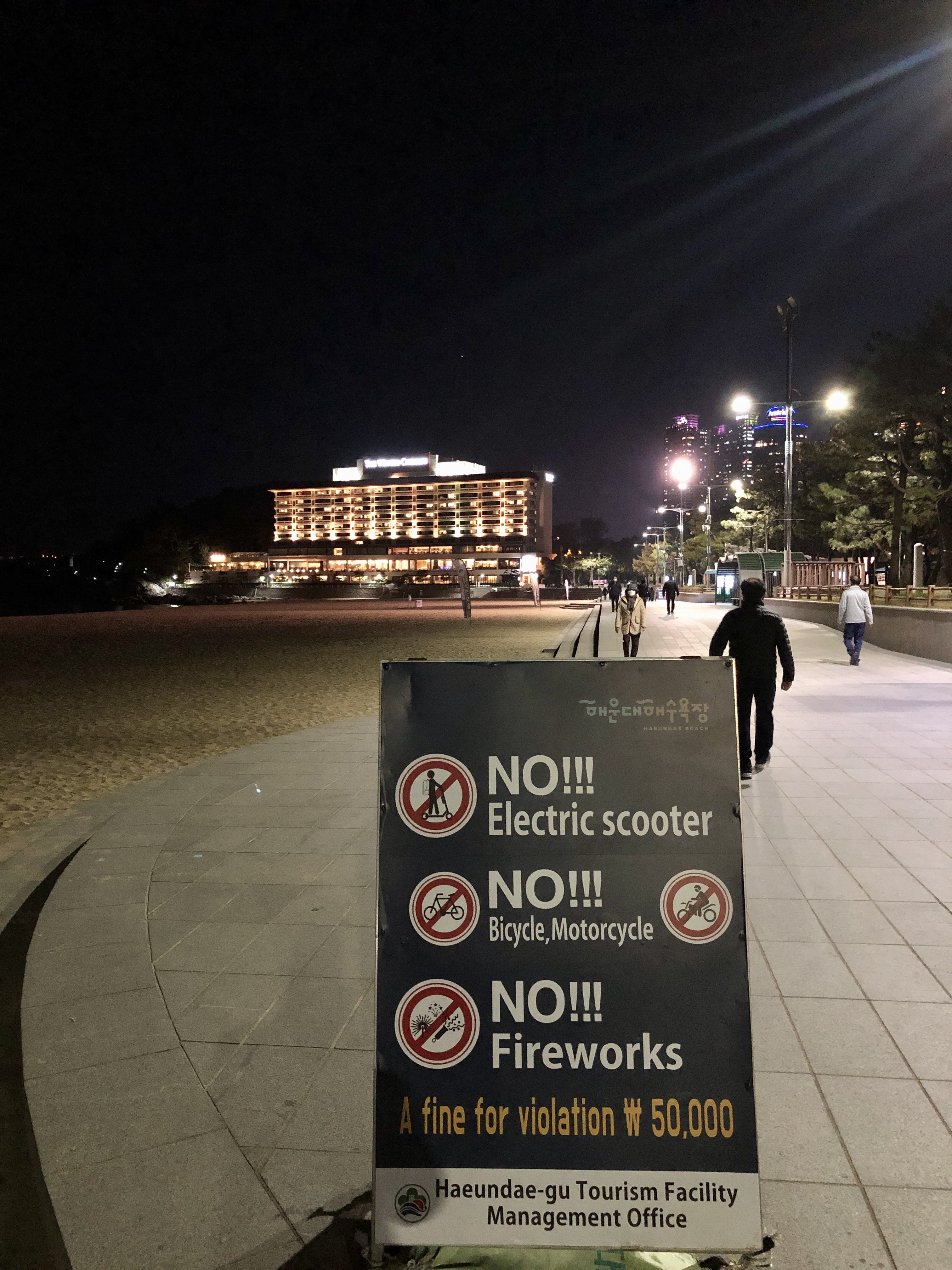 클로징 시간이 얼마 남지 않아 해운대 해수욕장을 구경하다가 포장하기로 하고 걸었습니다.