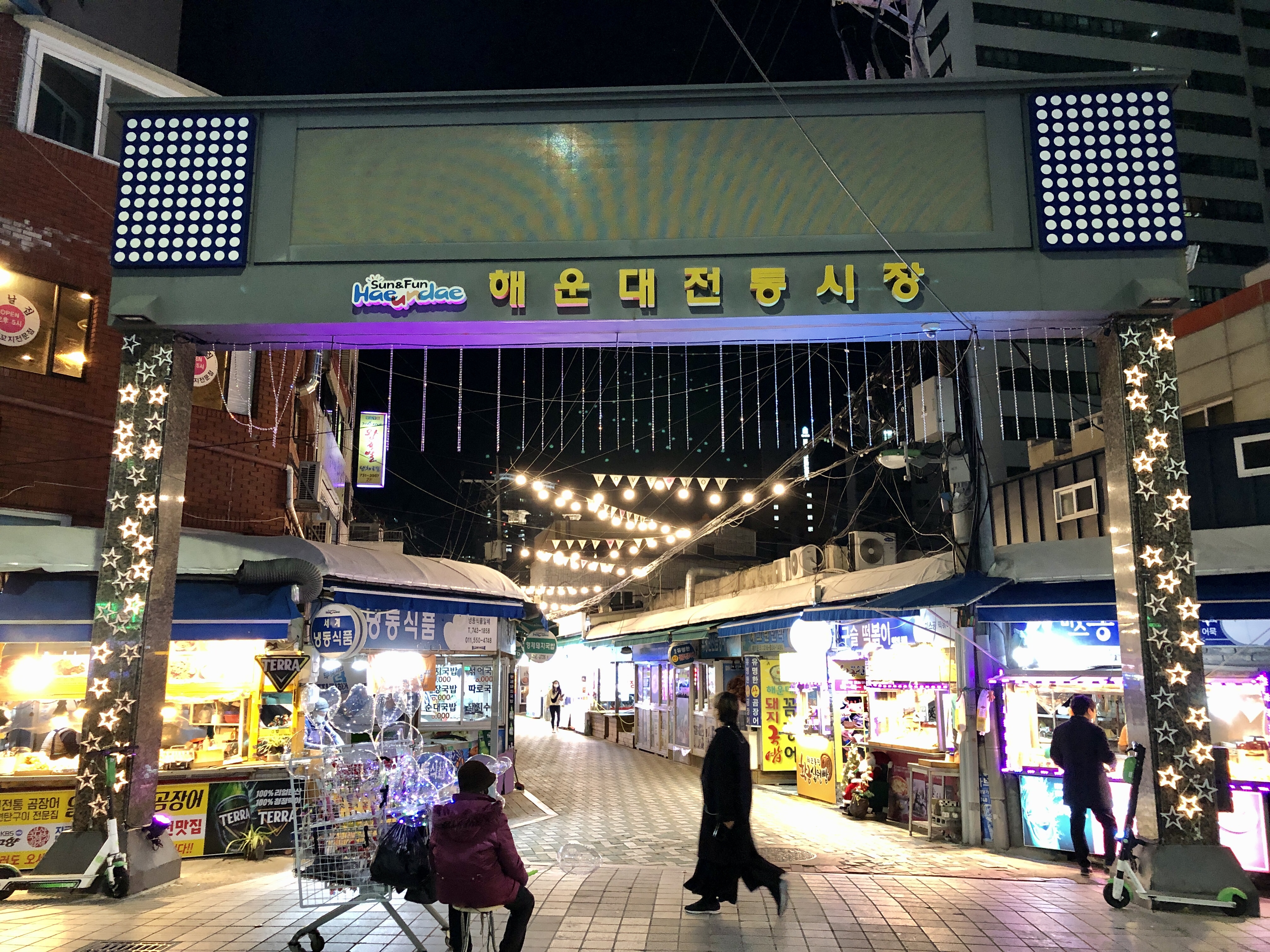 해운대 이벤트 광장에서 2021년을 준비하는 해운대의 로고를 보고 해운대 전통시장으로 향했습니다.