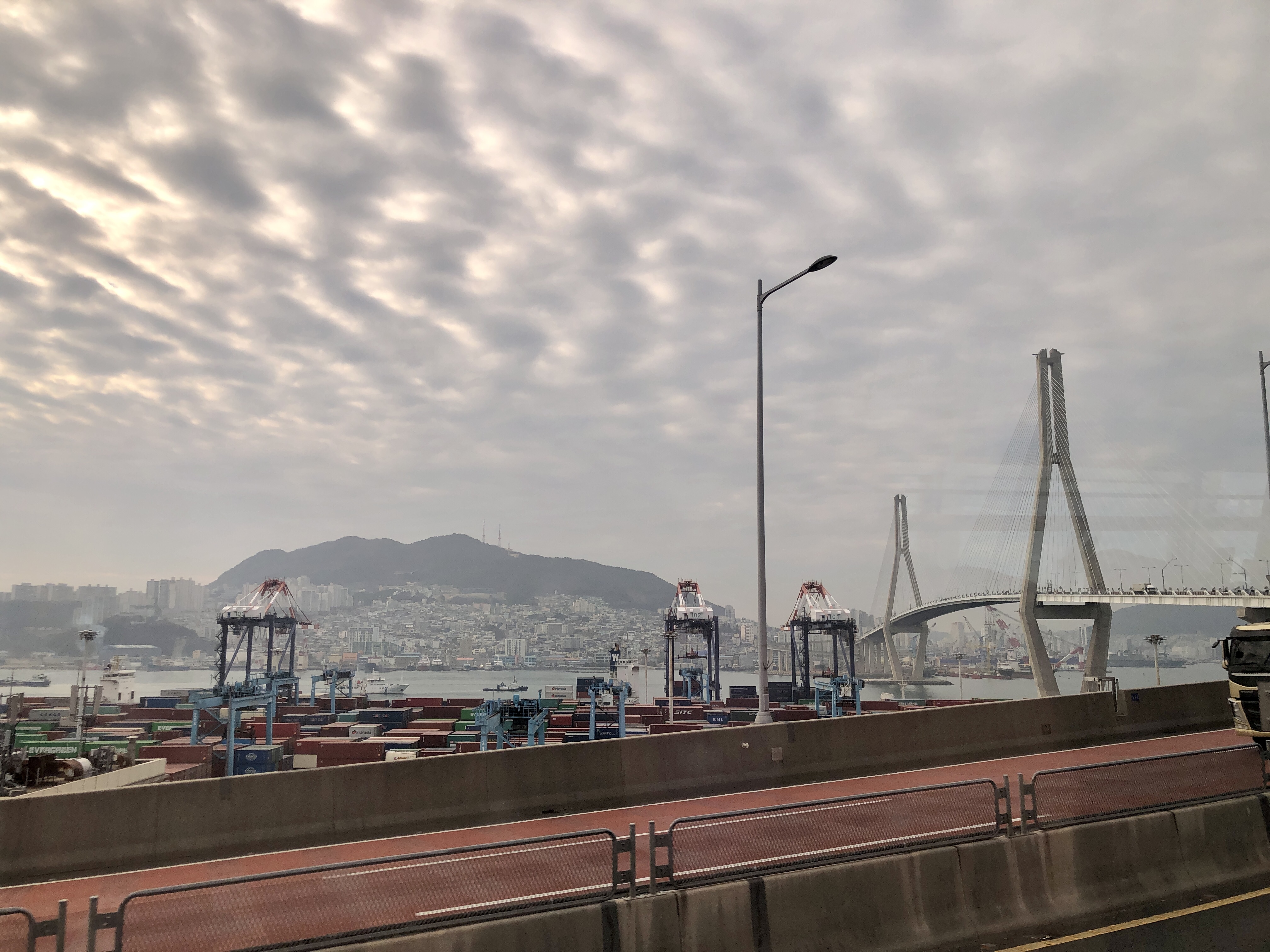 버스는 부산항쪽으로 향하며 부산항대교를 건너 영도로 향했습니다.