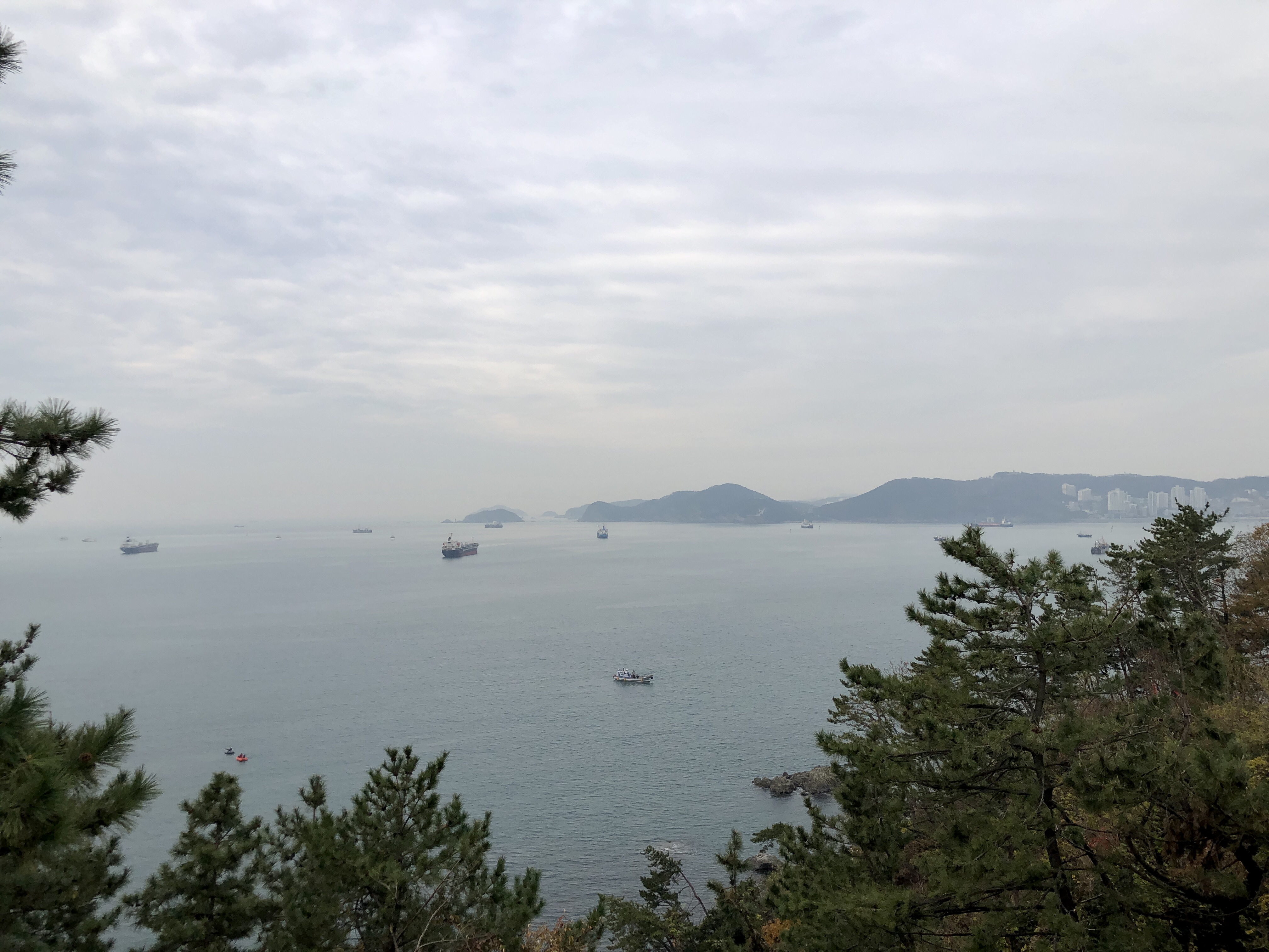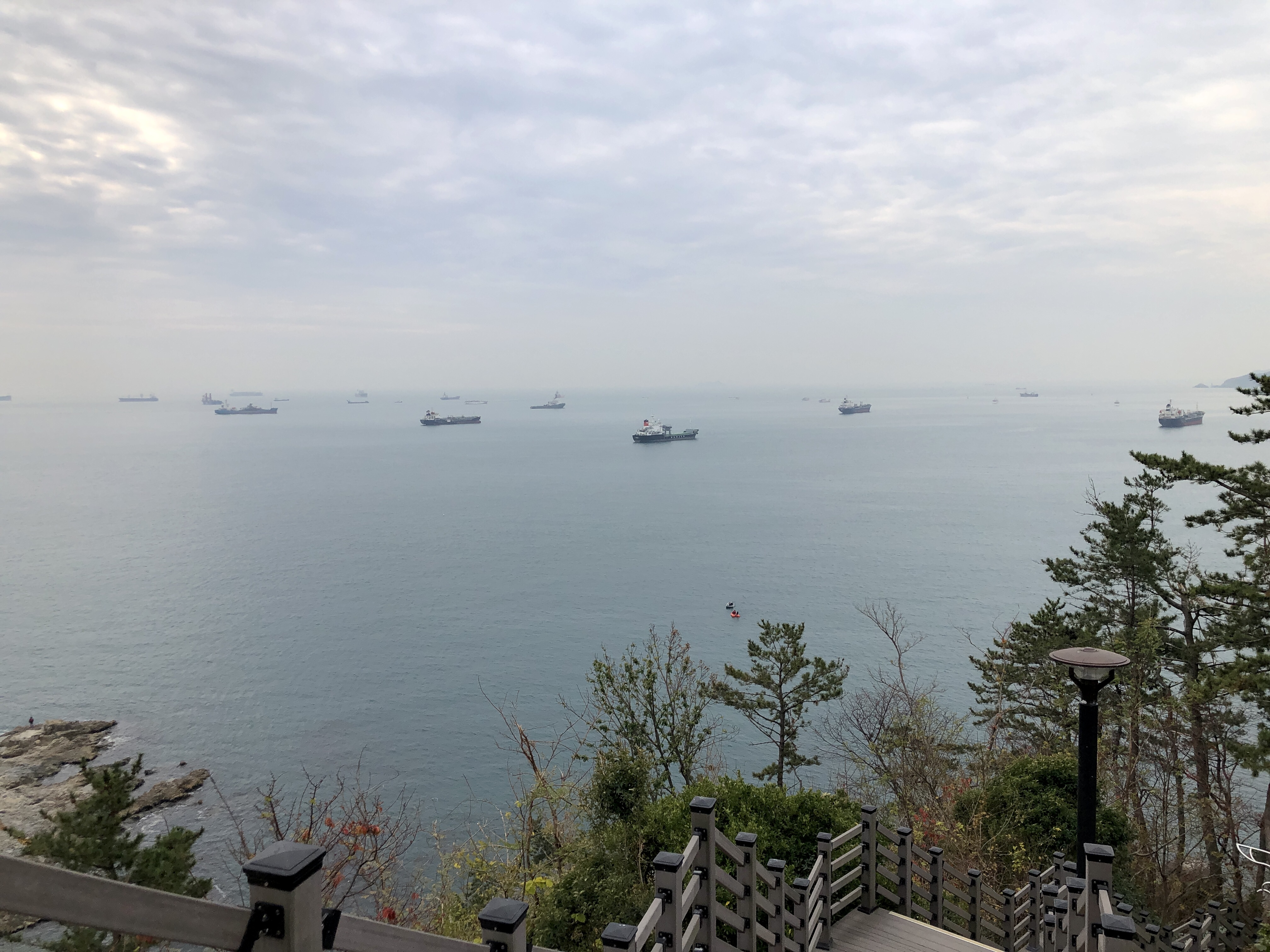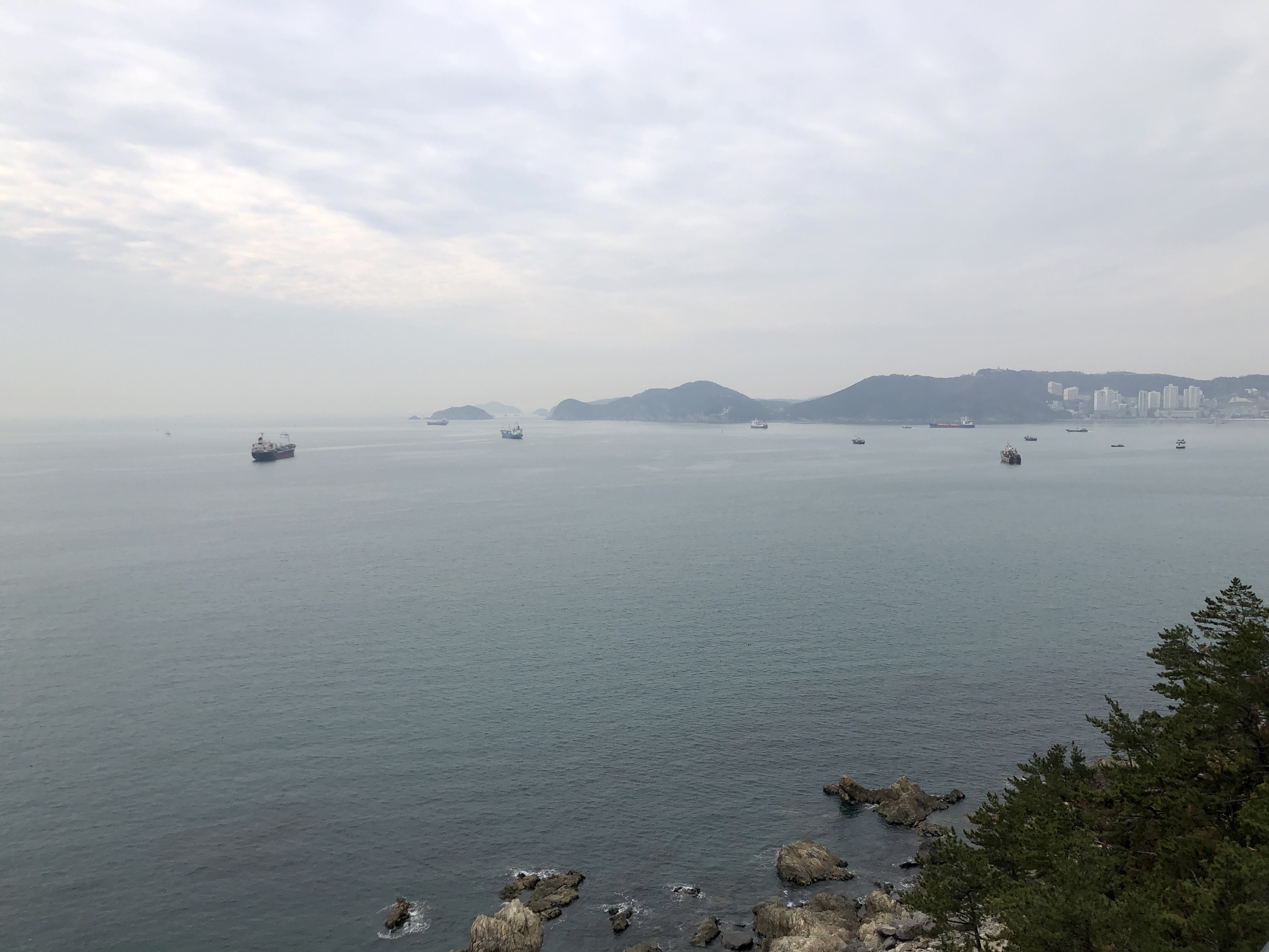 영도의 해안선이 잘 보이는 길을 따라 천천히 하늘공원 쪽으로 걸어갔습니다.