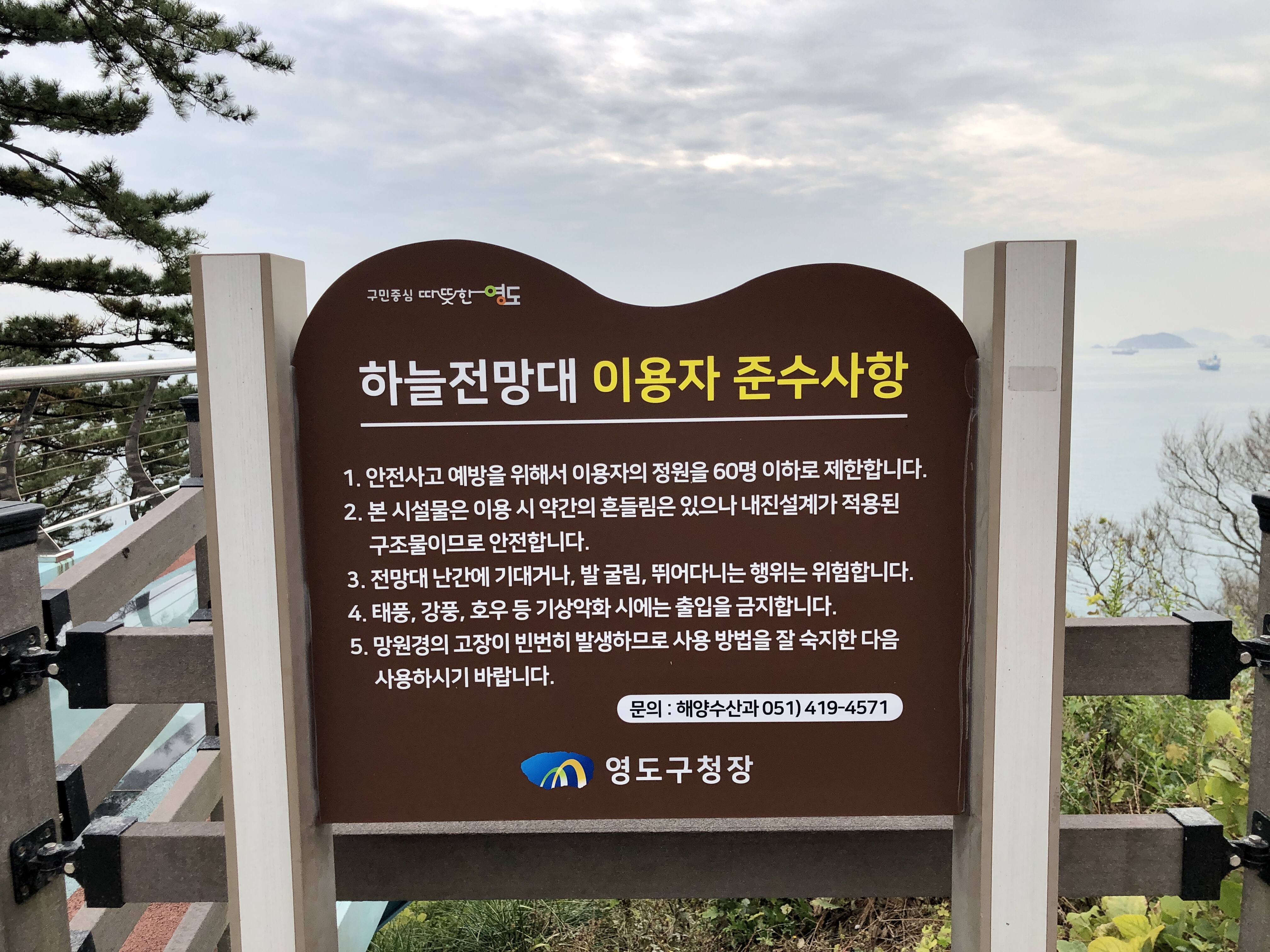 하늘전망대는 바닥이 투명하지만 바다쪽까지 멀리 뻗어있지 않아서 바닥을 통해서 바다가 보이지는 않았습니다.