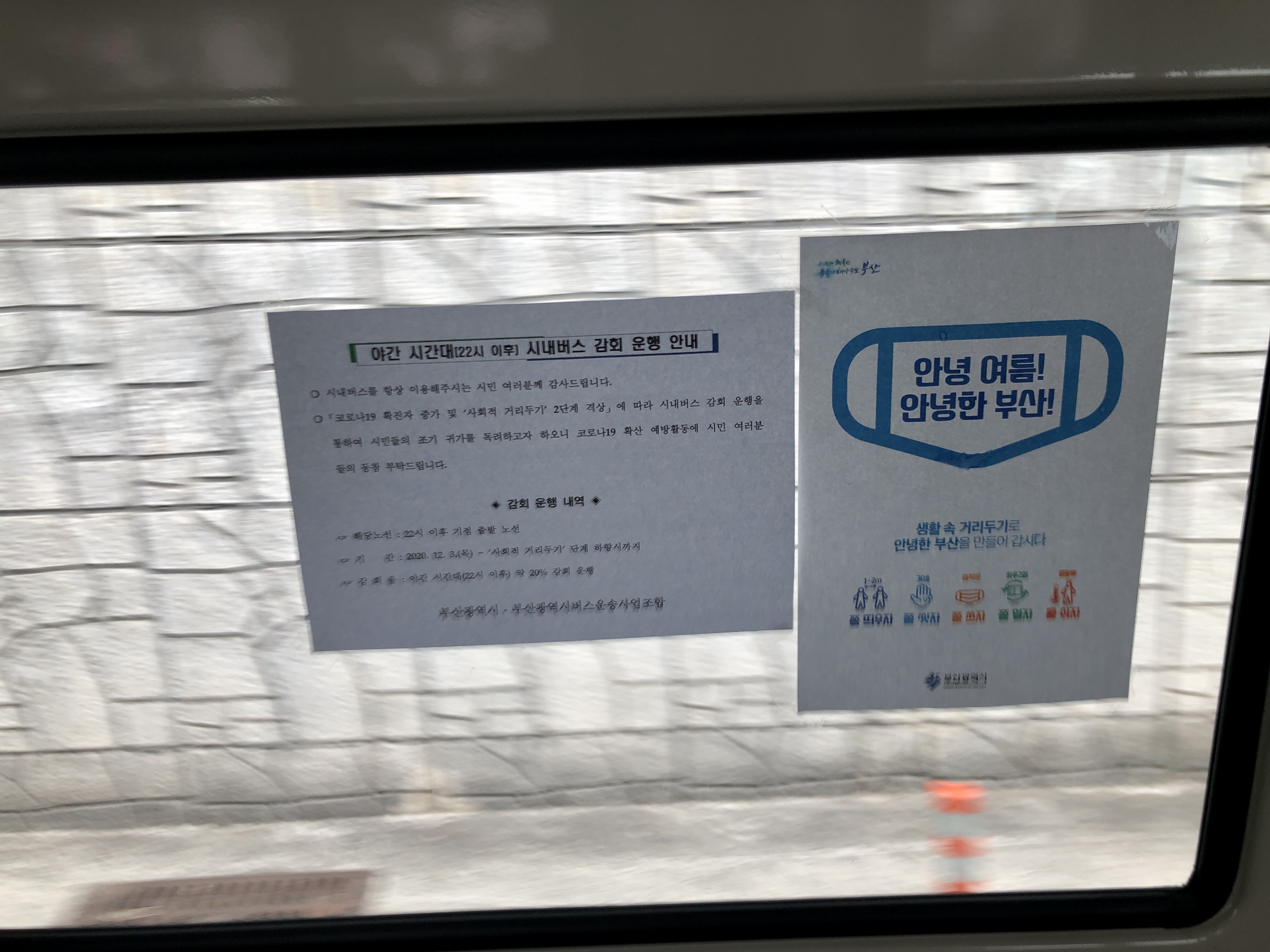 잠시 탄 버스에는 22시 이후 버스 감축운행에 대한 안내가 붙어있었습니다.