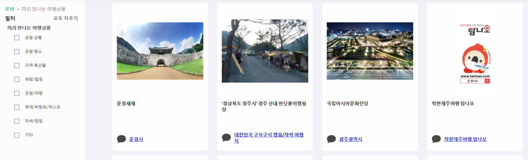 각 지자체 또는 여행사에서 추천하는 여행지와 여행상품이 올라와 있어서 저도 몇군데 찜해두었습니다.