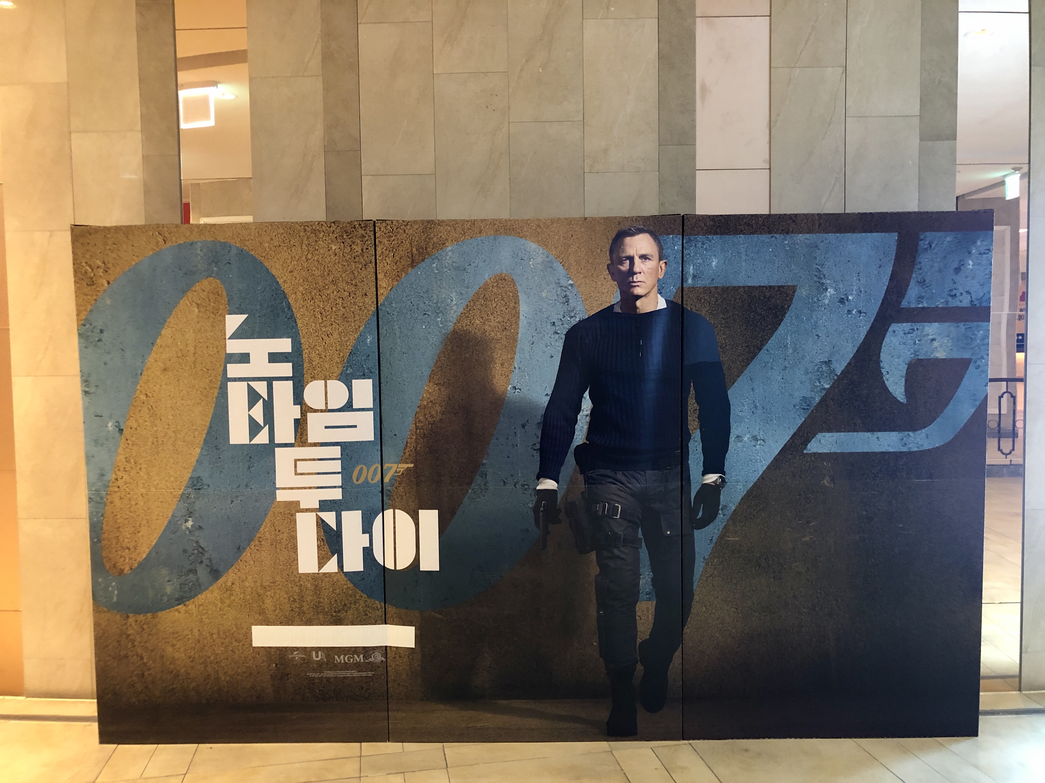 영화를 보러 들어오는길에 개봉이 연기된 007 노타임투다이 포스터월이 세워져 있었는데요