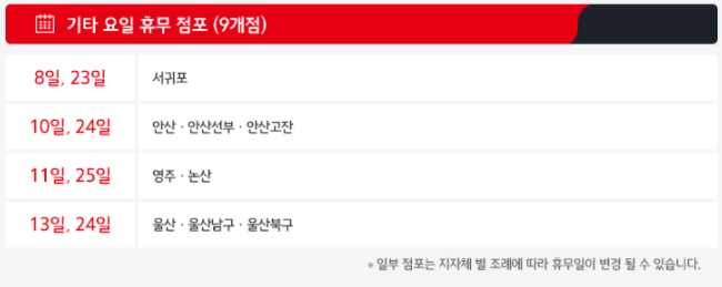 1월 8일과 23일 휴무 홈플러스 점포로는서귀포홈플러스가 있고
