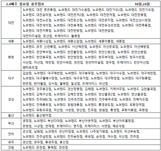 노브랜드 대전세이점, 노브랜드 대전용계점, 노브랜드 대전유성온천점, 노브랜드 대전죽동점,