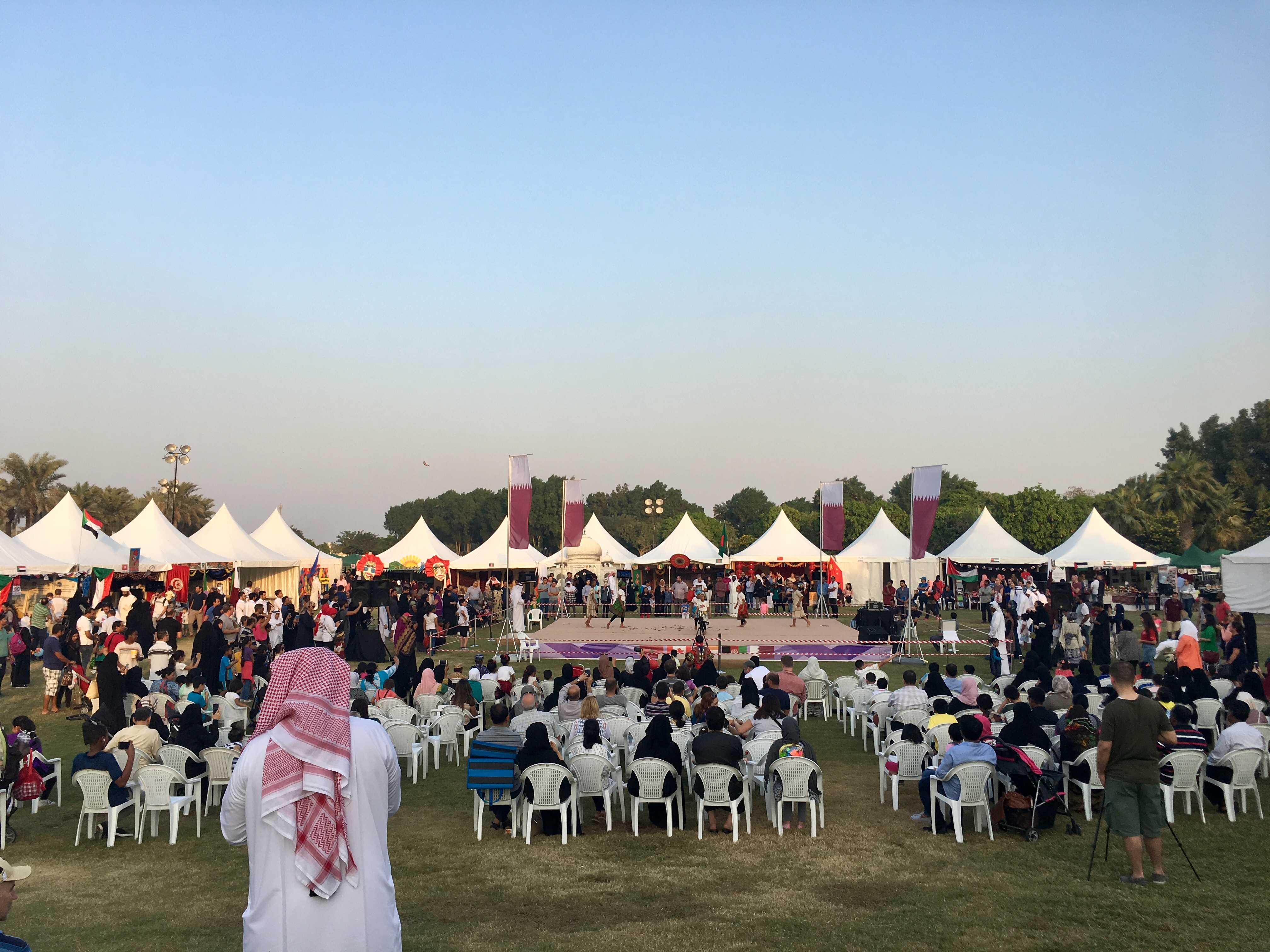 각국 국기가 걸려있고, 우리나라 전국 노래자랑처럼 중앙에 무대가 있고 사람들이 주변에 많이 모여있었다.