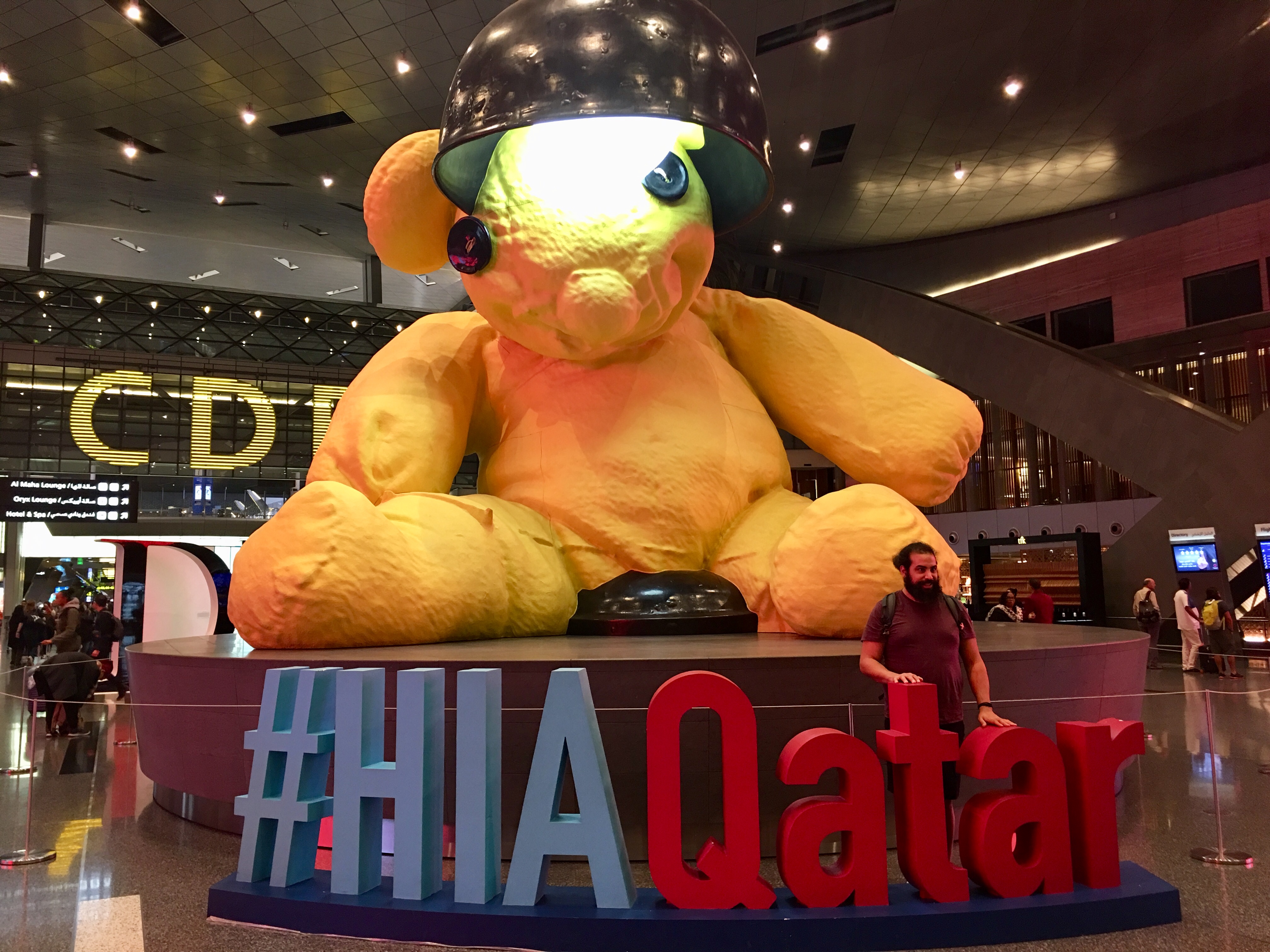 도하 국제공항에 도착하면 하마드공항의 상징 대형 곰돌이가 중앙에 보인다.