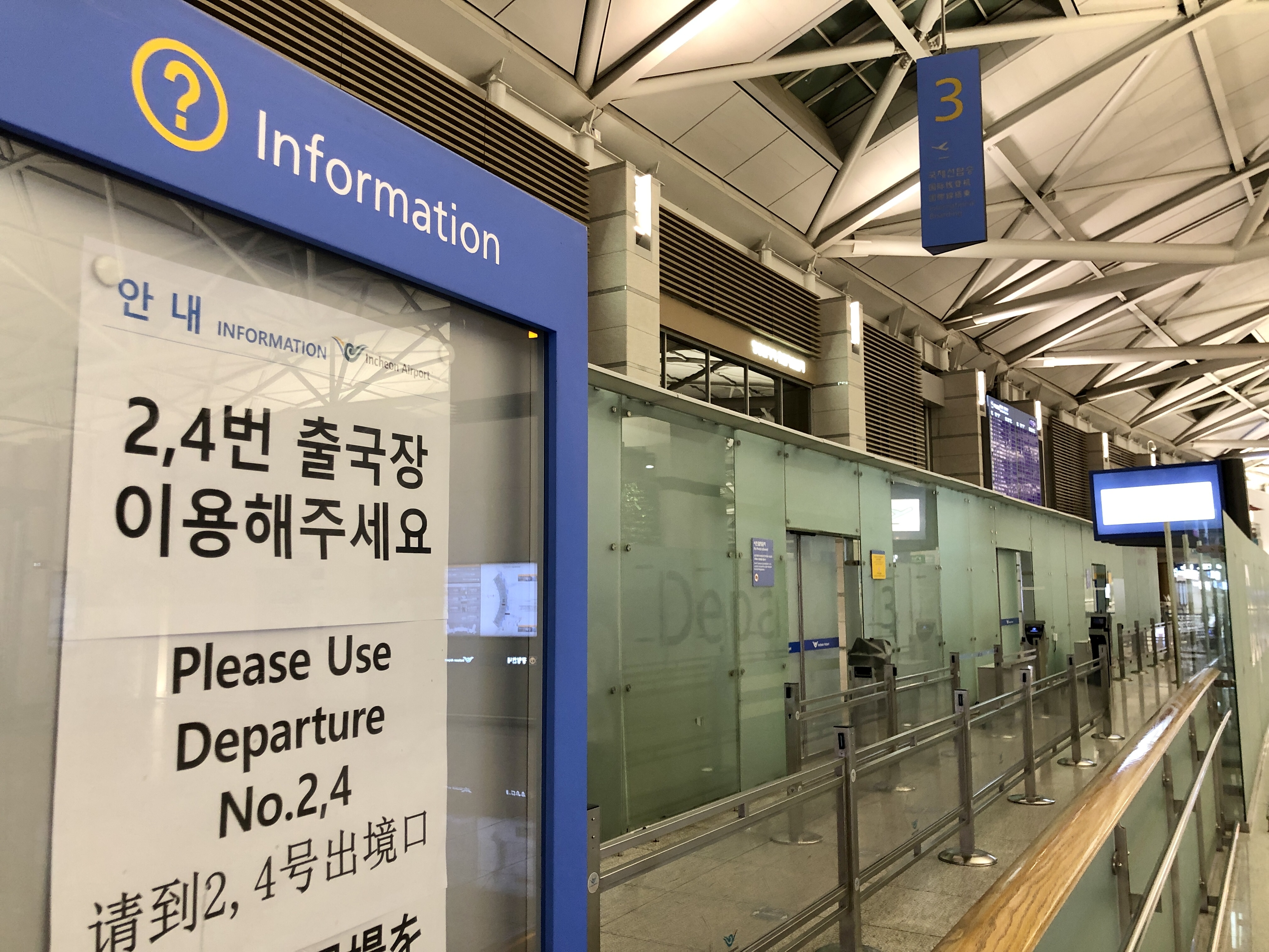 출국장으로 향하는 게이트에는 간간히 외국인들이 1명씩 발열체크 후 입장하였다.