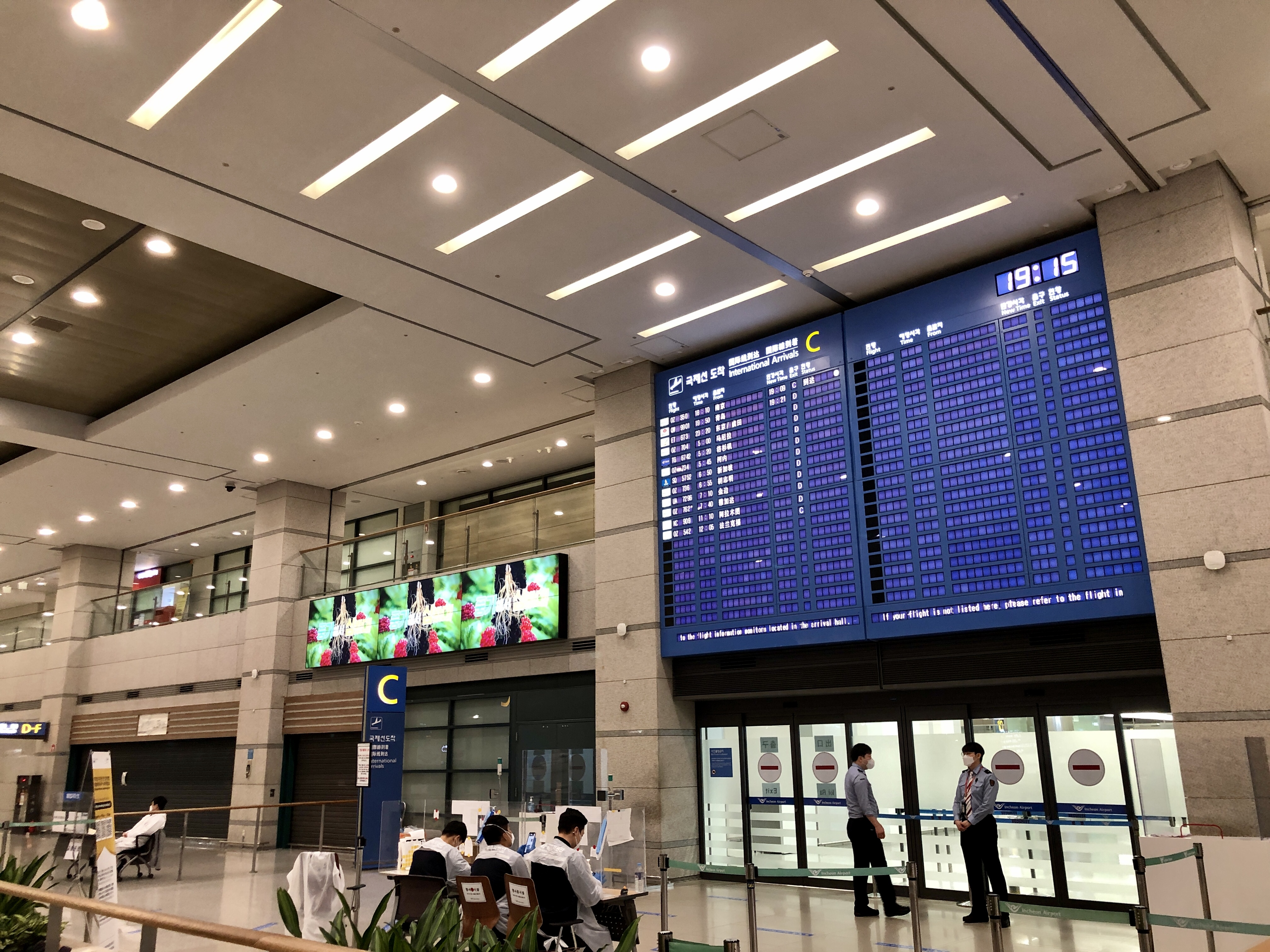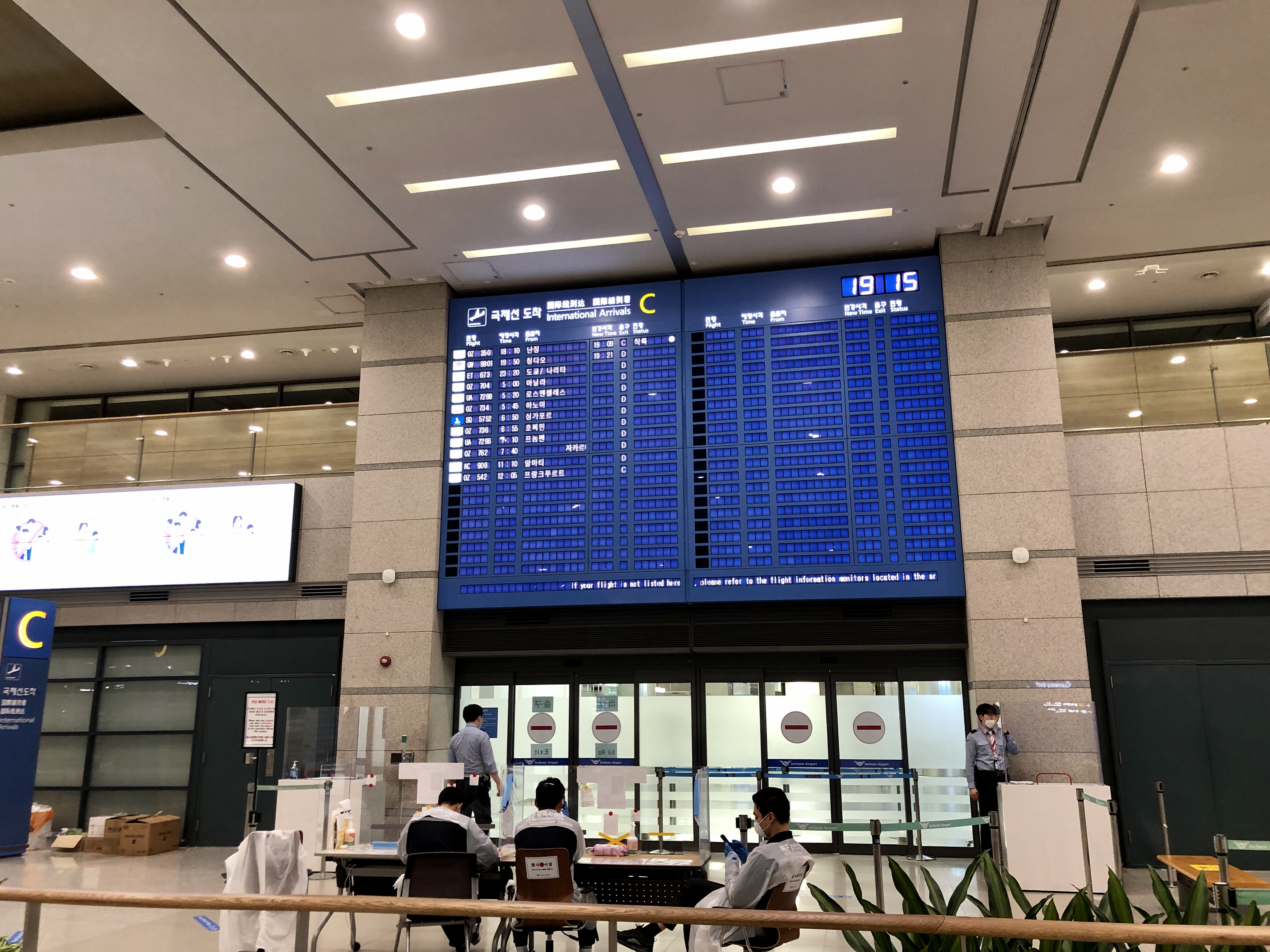 C 입국장 앞에는 방역 직원들이 몇명 대기하고 있었는데 나오자마자 바로 체크하는 듯 했다.