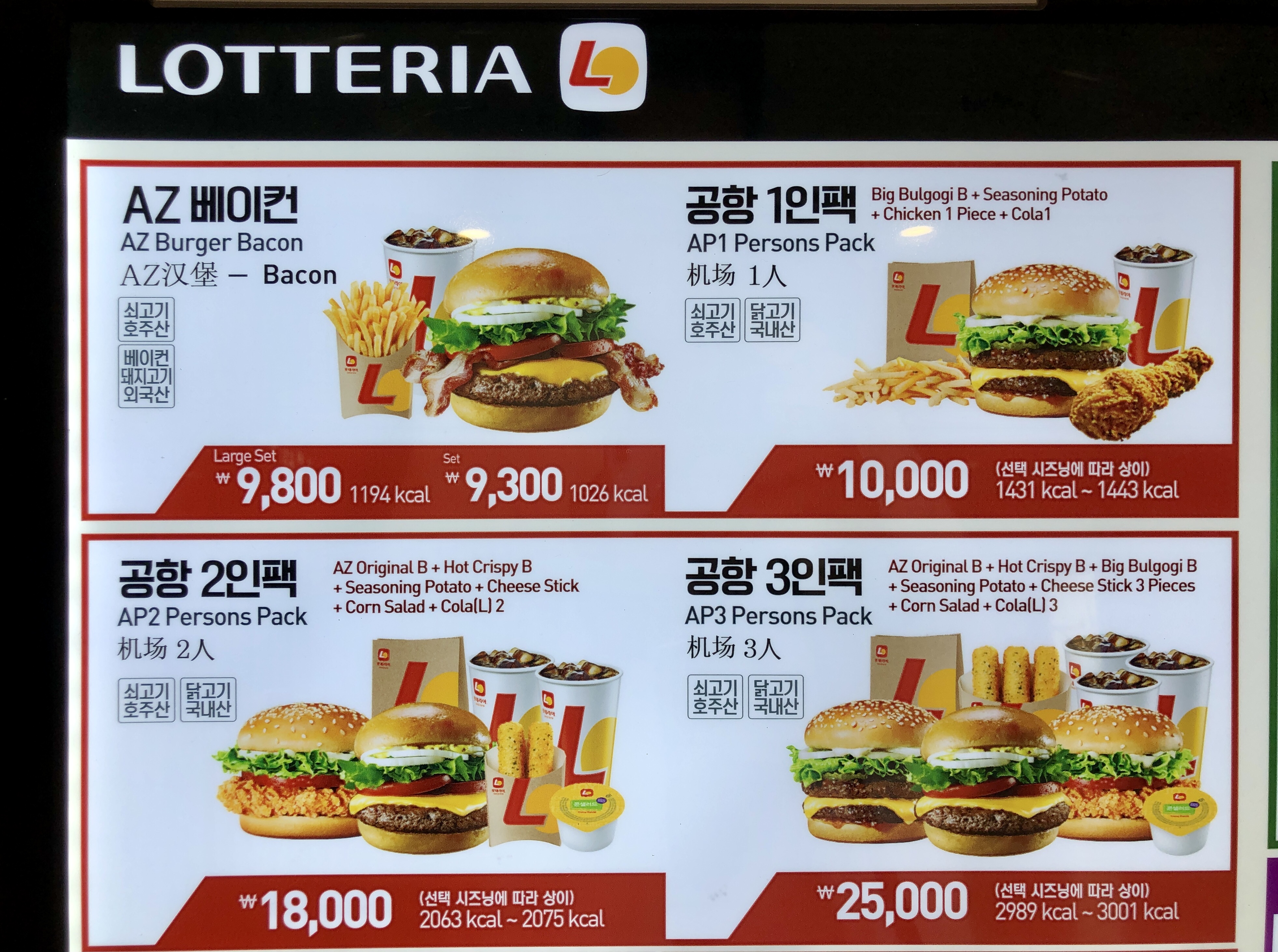 공항에서 햄버거를 먹을일이 없어서 이번에 처음으로 롯데리아 메뉴판을 봤는데