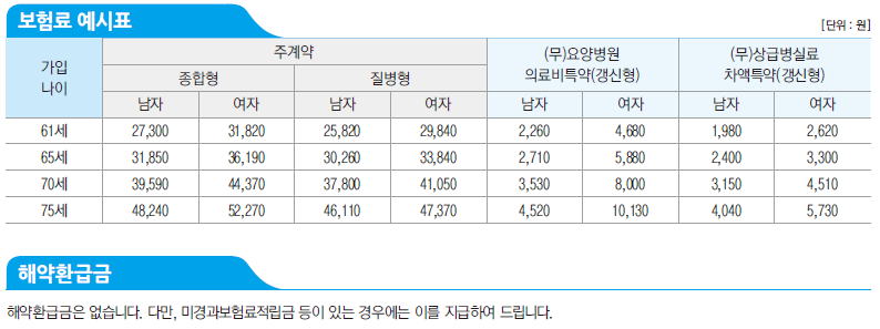 부부가 둘다 75세가 되어야 둘이 합쳐서 10만원 정도 나오는군요! 정말 혜자스러운 노후실비보험입니다.