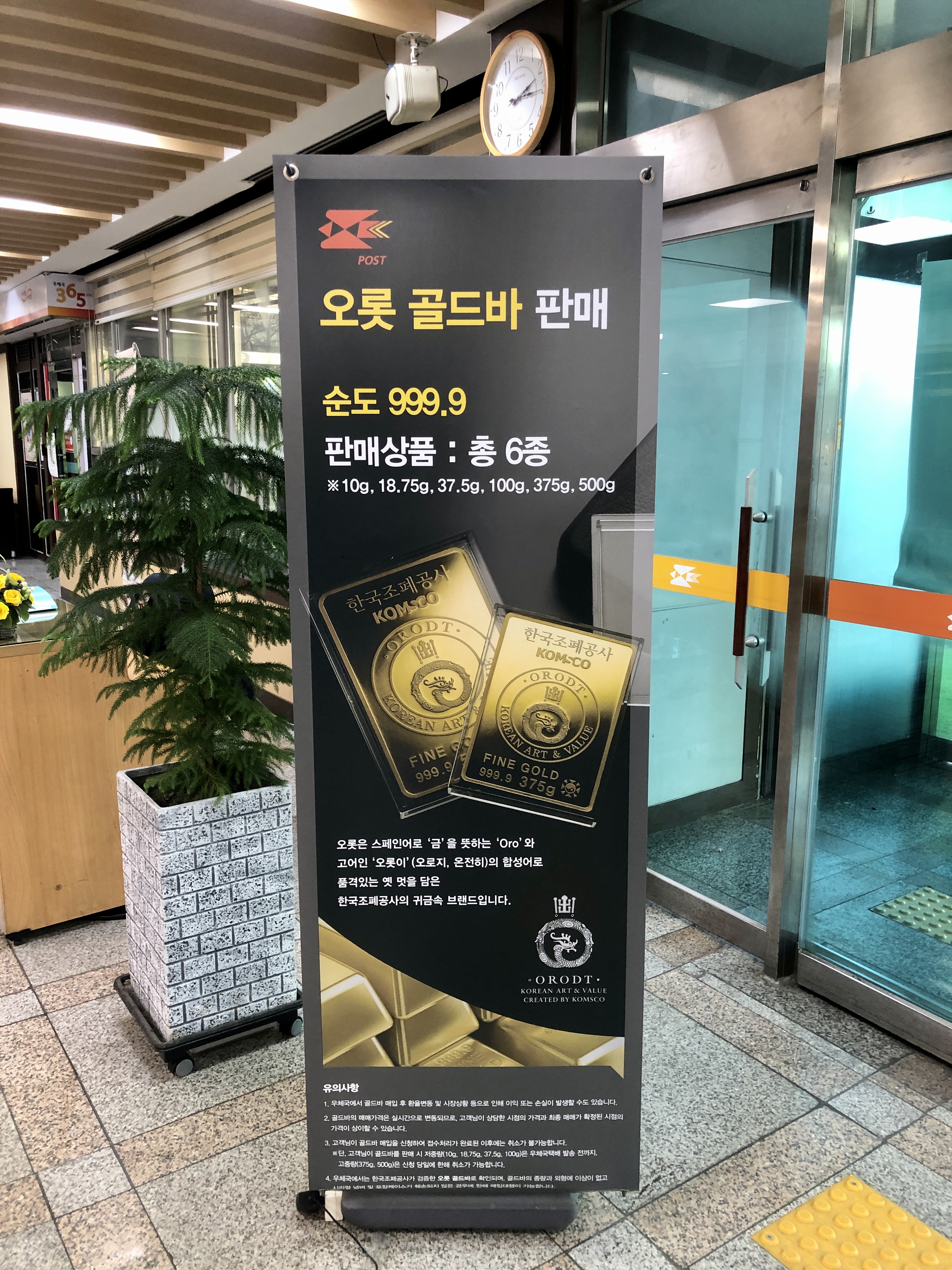우체국에서 제 시선을 빼앗은 광고 현판이 있었는데 바로 골드바를 판매하고 있는 광고였습니다.