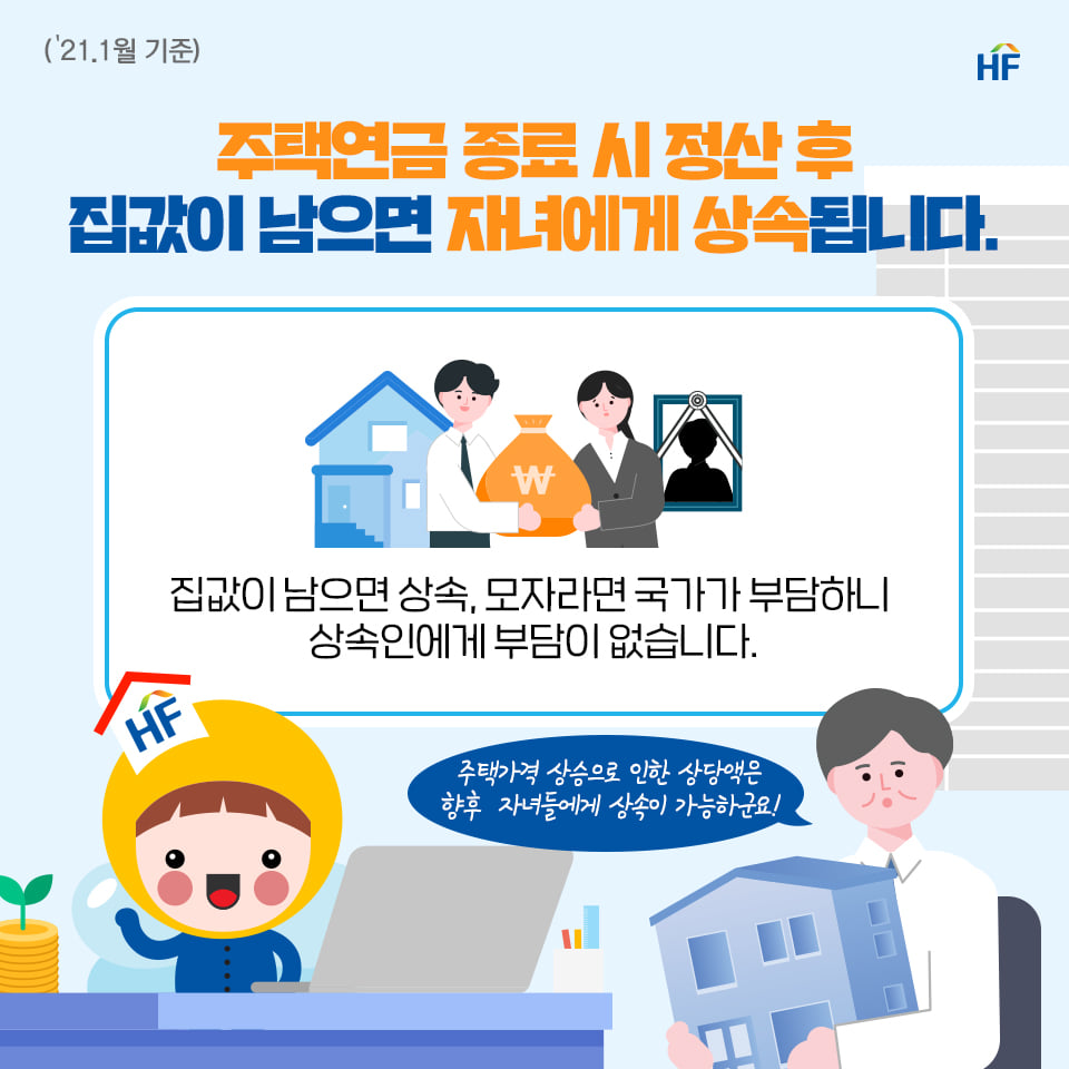 그리고 주택연금 종료 시, 정산후에 주택가격 상승으로 인해 지급받은 금액이 주택가치에 비해