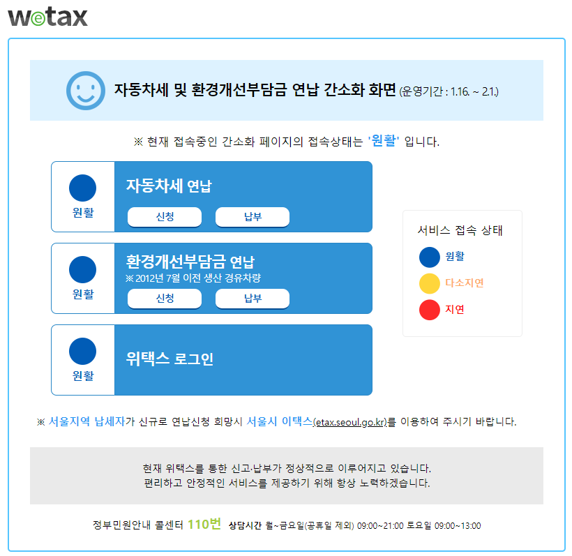 저는 인천에 거주하고 있어 인천 이택스를 통해 오늘(1월 16일)부터 신청 및 납부가 가능한 상황입니다.