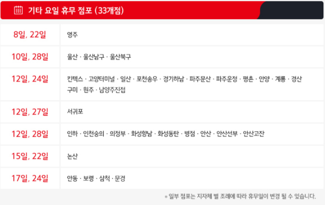 ※ 휴점 점포는 지자체의 상황에 따라 변동이 있을 수 있습니다.