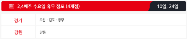 두번째로 2,4째주 수요일인 2월 10일과 24일에도 4개의 홈플러스점포가 휴무하게 됩니다.