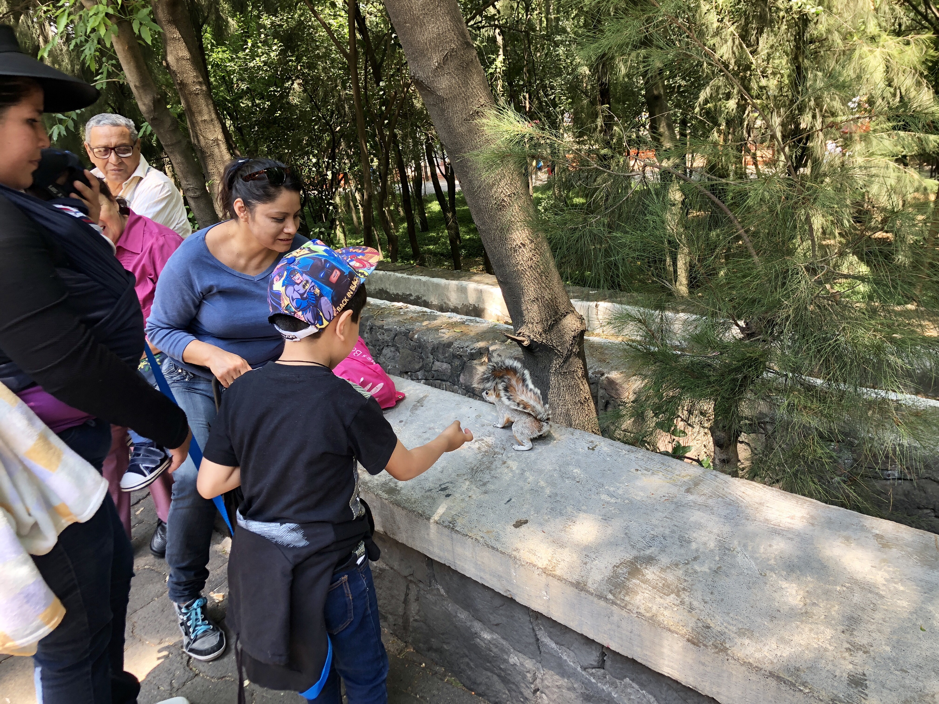 청설모 같은데 우선 매우 크고 사람을 전혀 무서워하지 않아 오히려 근처에 와서 먹을 것을 받아간다.