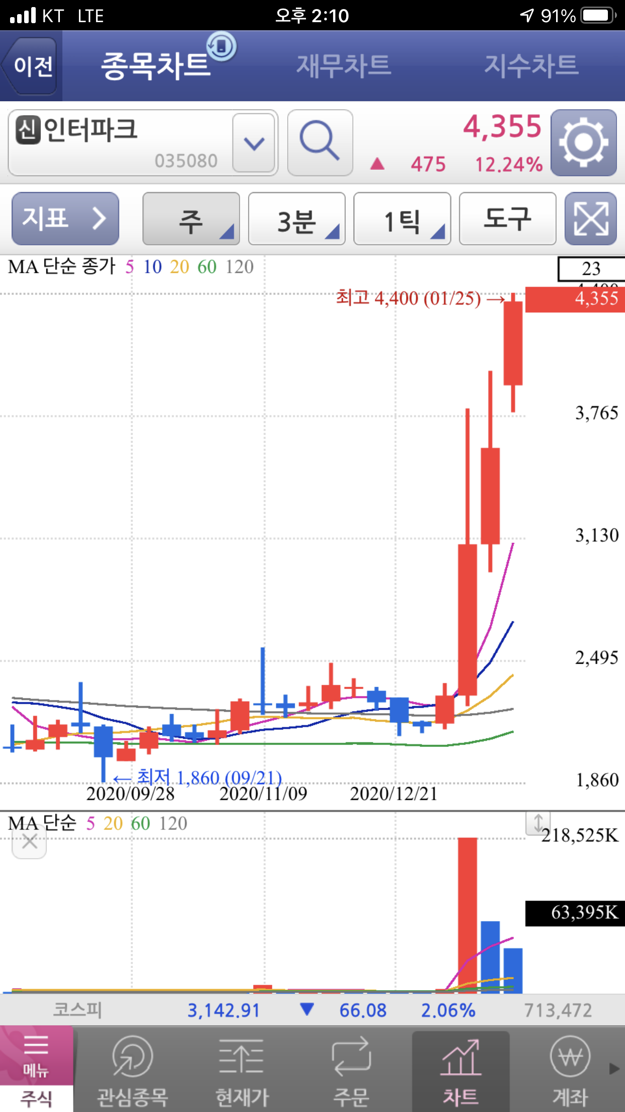 최근 2주간 급등 시세를 주어 전액 매도하게 되었습니다.