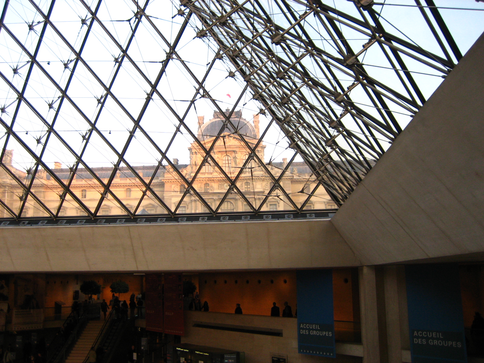 하지만 입장권을 구매하기 위해서는 유리 피라미드를 통해 입장하는 게 보통입니다.