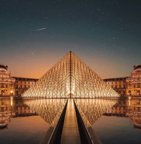 너무도 유명한 유리피라미드 건물의 루부르 박물관이 등장합니다.