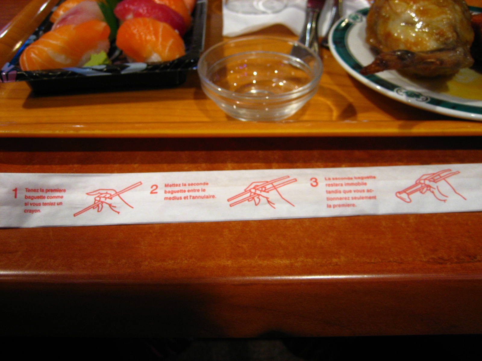 재미있던 것은 젓가락포장지에 젓가락 사용법이 그림과 프랑스어로 되어있었습니다.