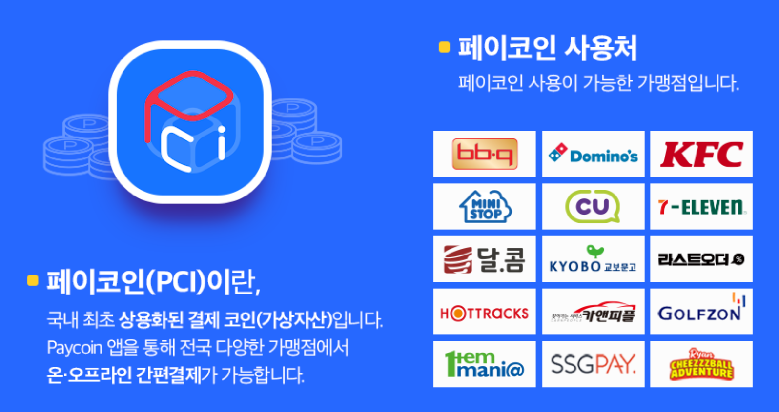 우선 페이코인은 국내 최초 상용화된 결제코인으로 우리가 자주방문하는 편의점 부터