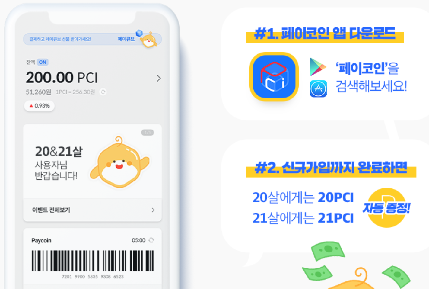 신규가입자중 올해 20살과 21살에게는 나이만큼 각각 20개 21개의 페이코인이 지급된다고 합니다.