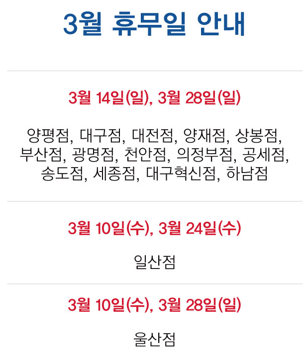 3월 이마트 휴무일 안내