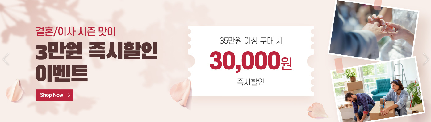 첫번째 이벤트로 결혼과 이사시즌을 맞아 35만원 이상 구매시 3만원 할인 이벤트입니다.