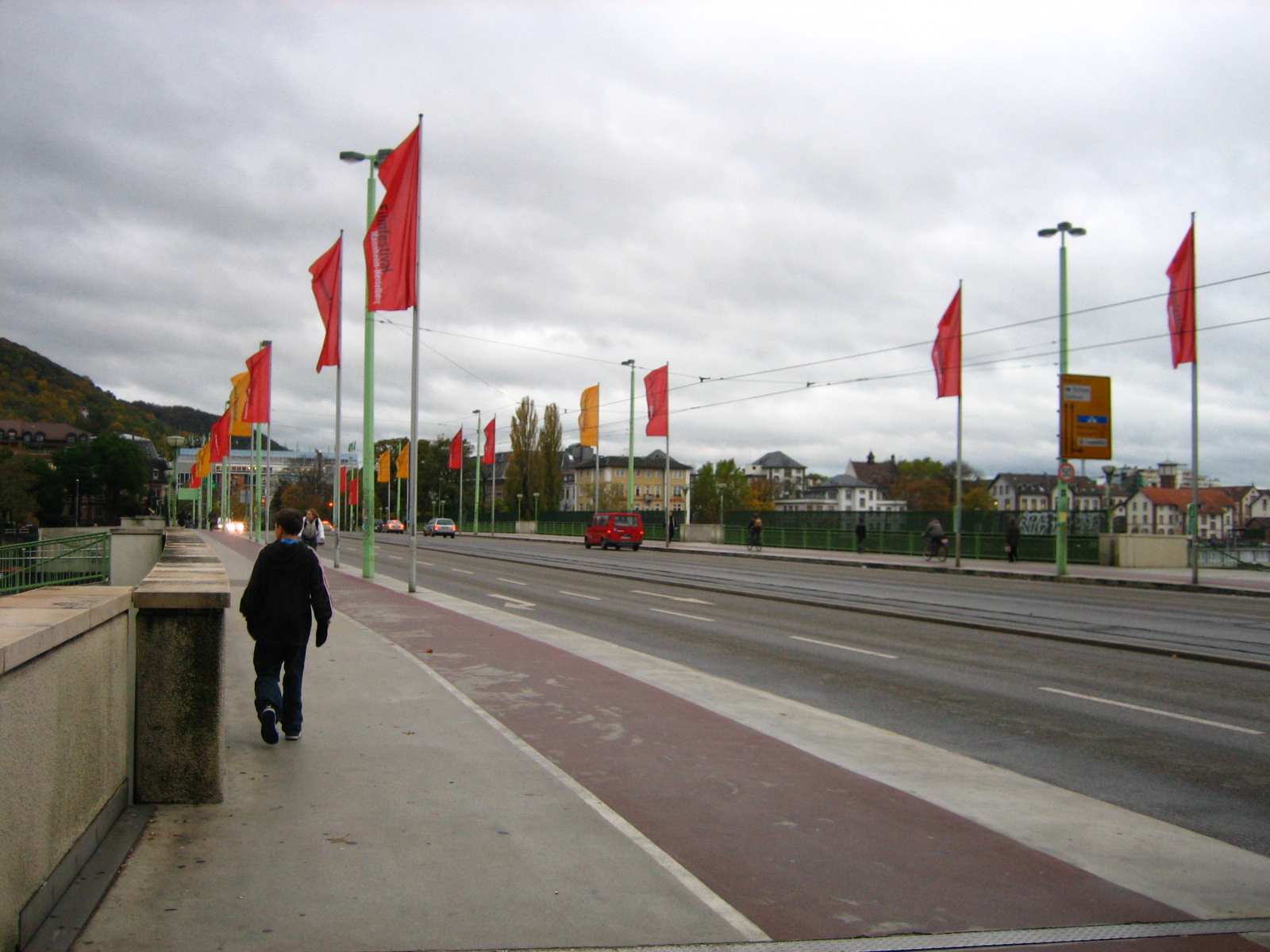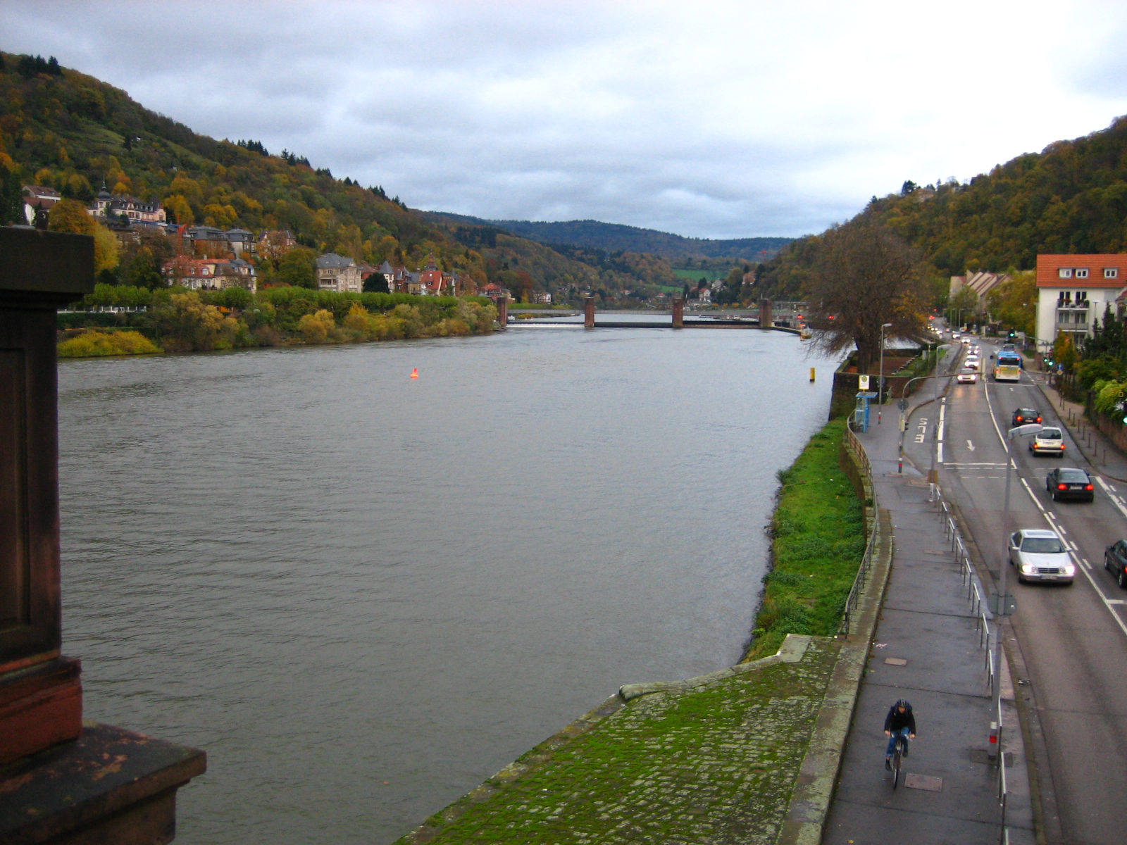 다리 아래로는 잔잔한 네카르강이 흐르고 있고 강변을 따라 자전거 도로가 잘 정비되어 있어