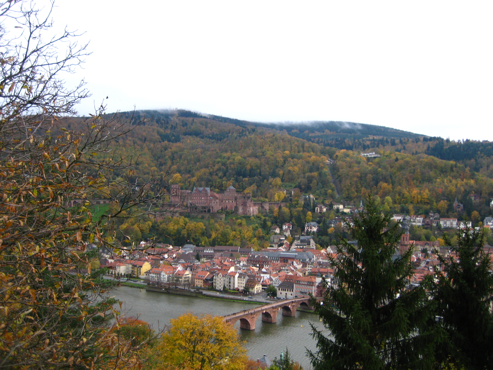 하이델베르크 성에서 멋진 도시의 전경을 감상하고 내려와 아름다운 카를 테어로드 다리를 건너