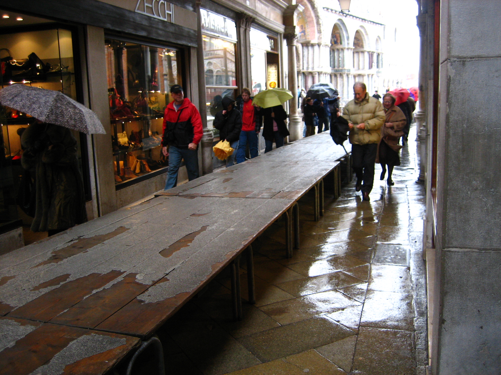 정상으로 돌아가는데 그 동안에는 저렇게 널빤지 다리를 깔아 물에 잠긴 길 위를 걷습니다.
