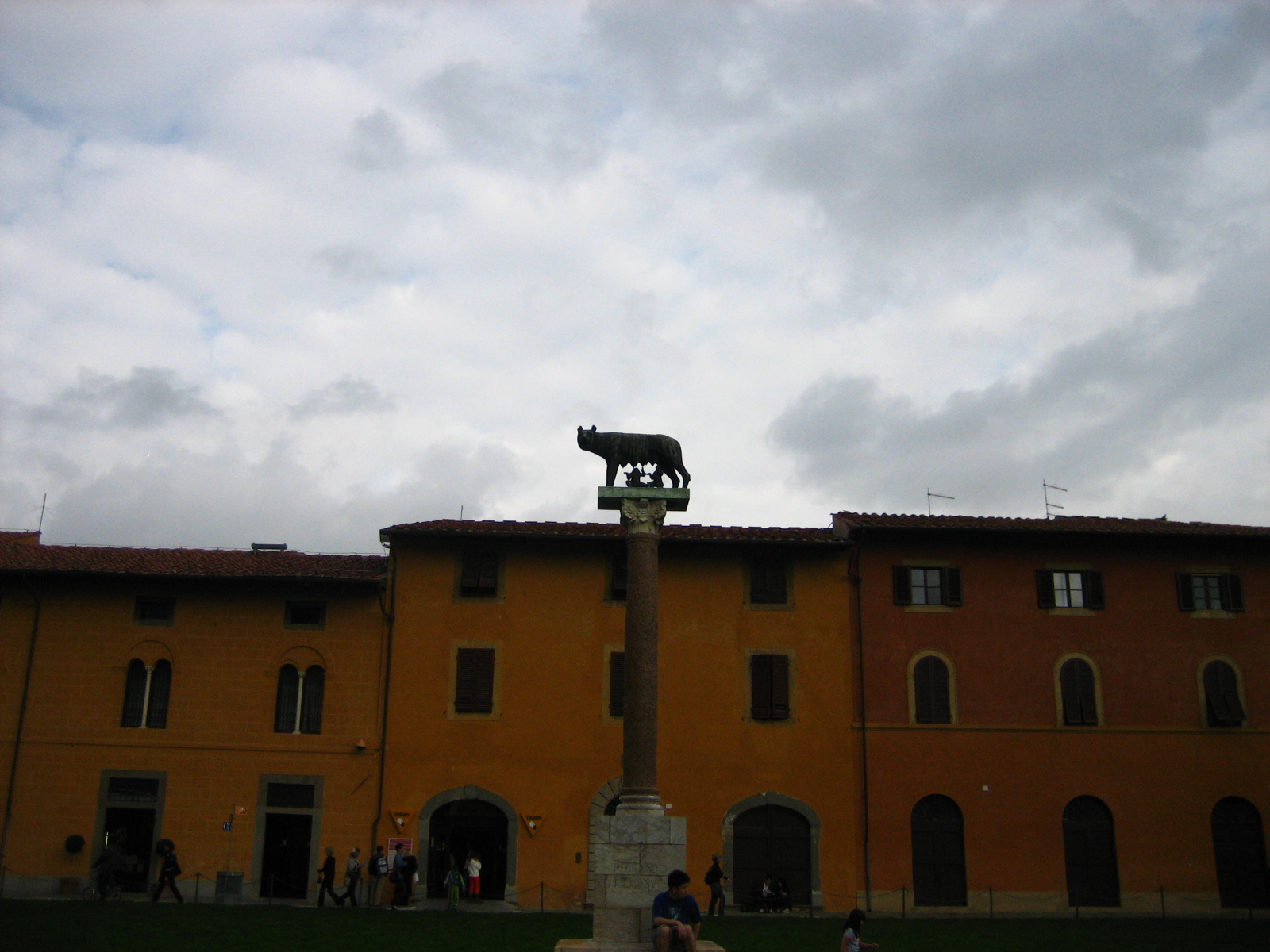 피사의사탑을 배경으로 온갖 자세로 독특한 인증샷을 찍는 관광객들앞에는 로마의 건국 신화에 나오는
