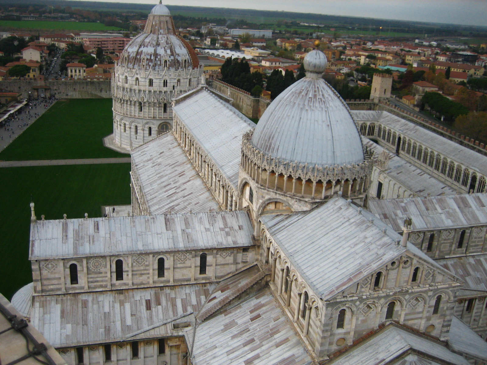 이 성당은 피사의 사탑이라는 이름으로 알려진 종루, 세례당, 묘지 캄포산토 등을 갖추었습니다.