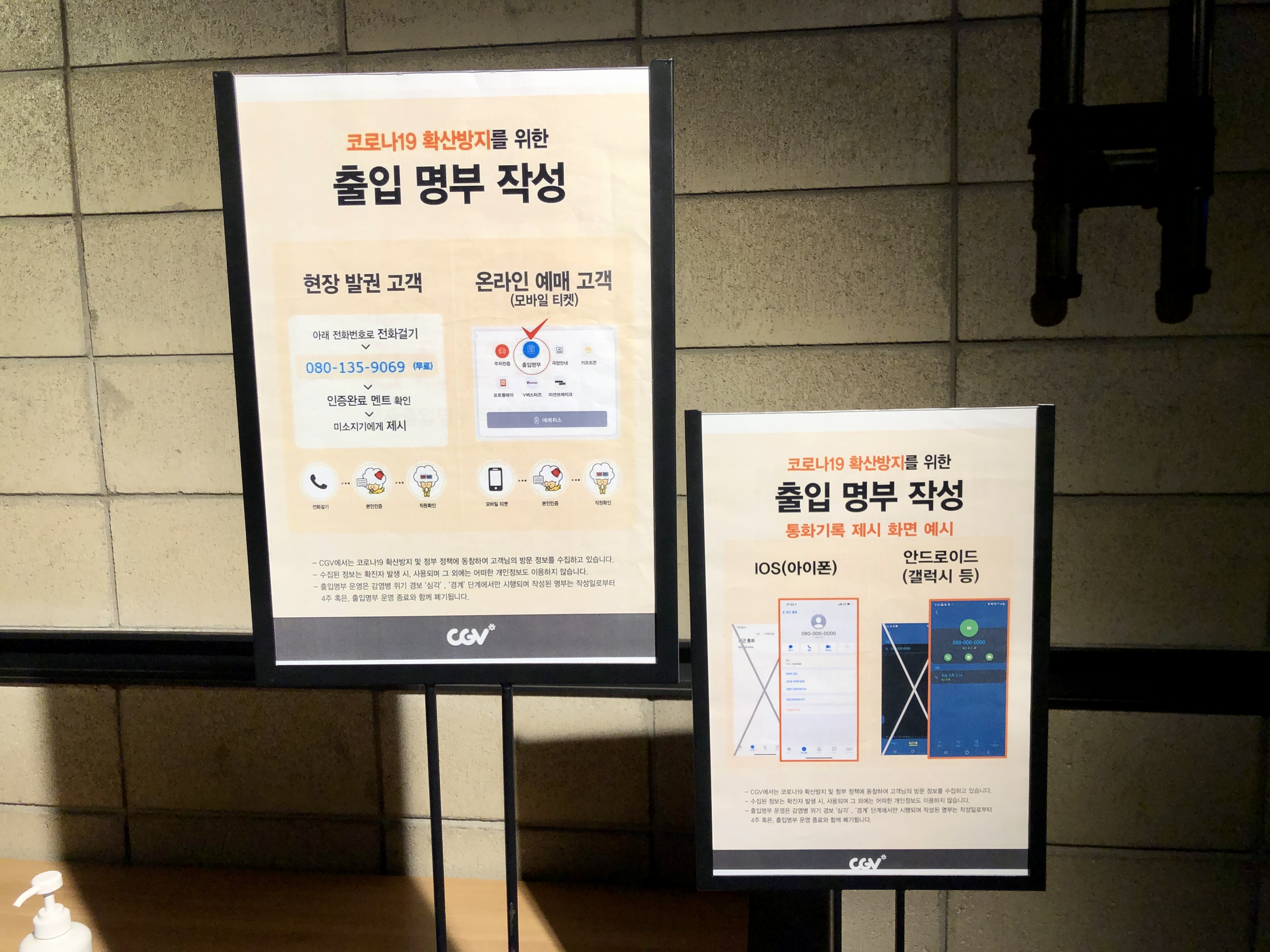 현장발권고객과 온라인 예매 고객별로 당연히 출입 명부를 작성하고 입장해야 했는데