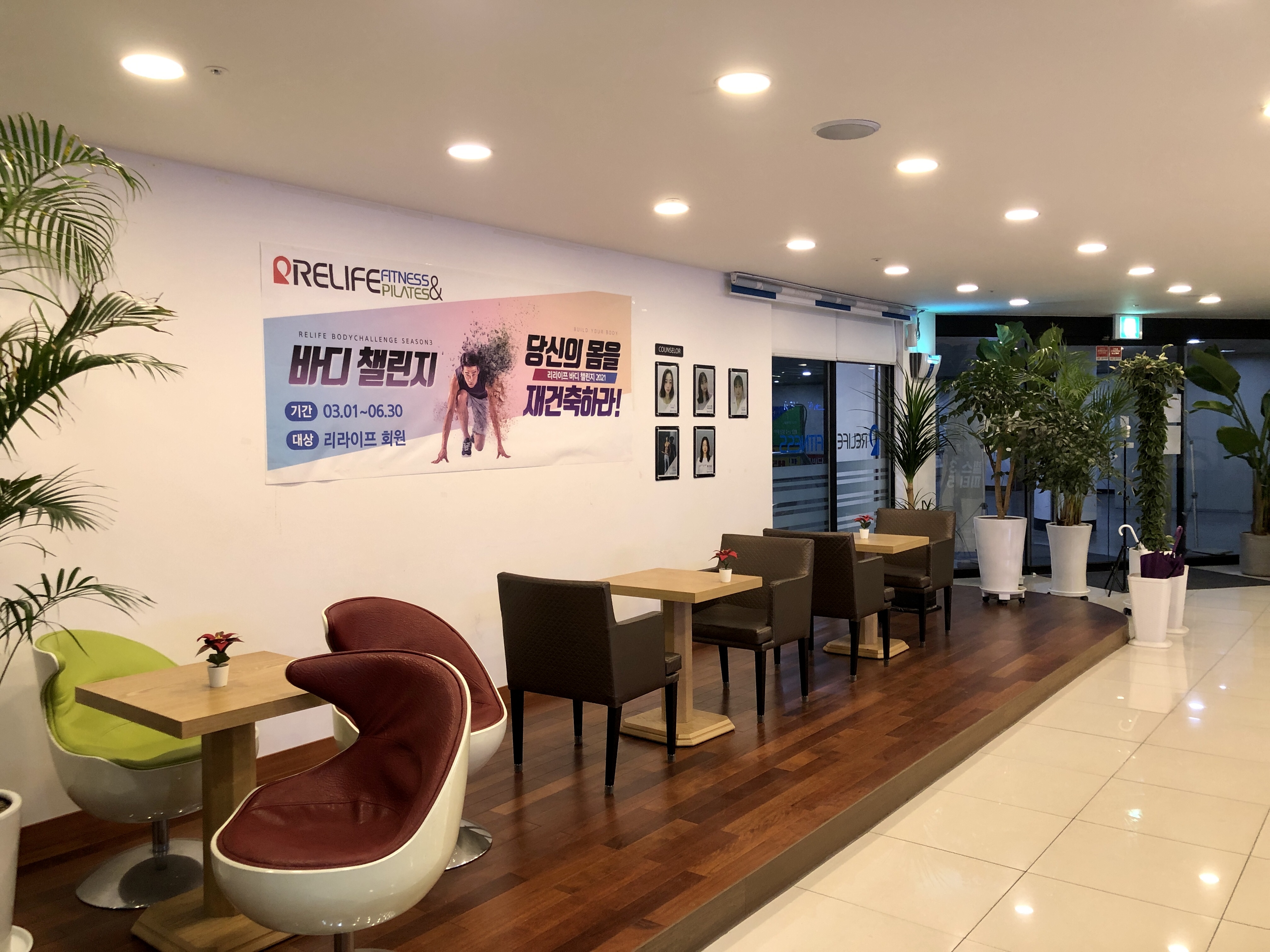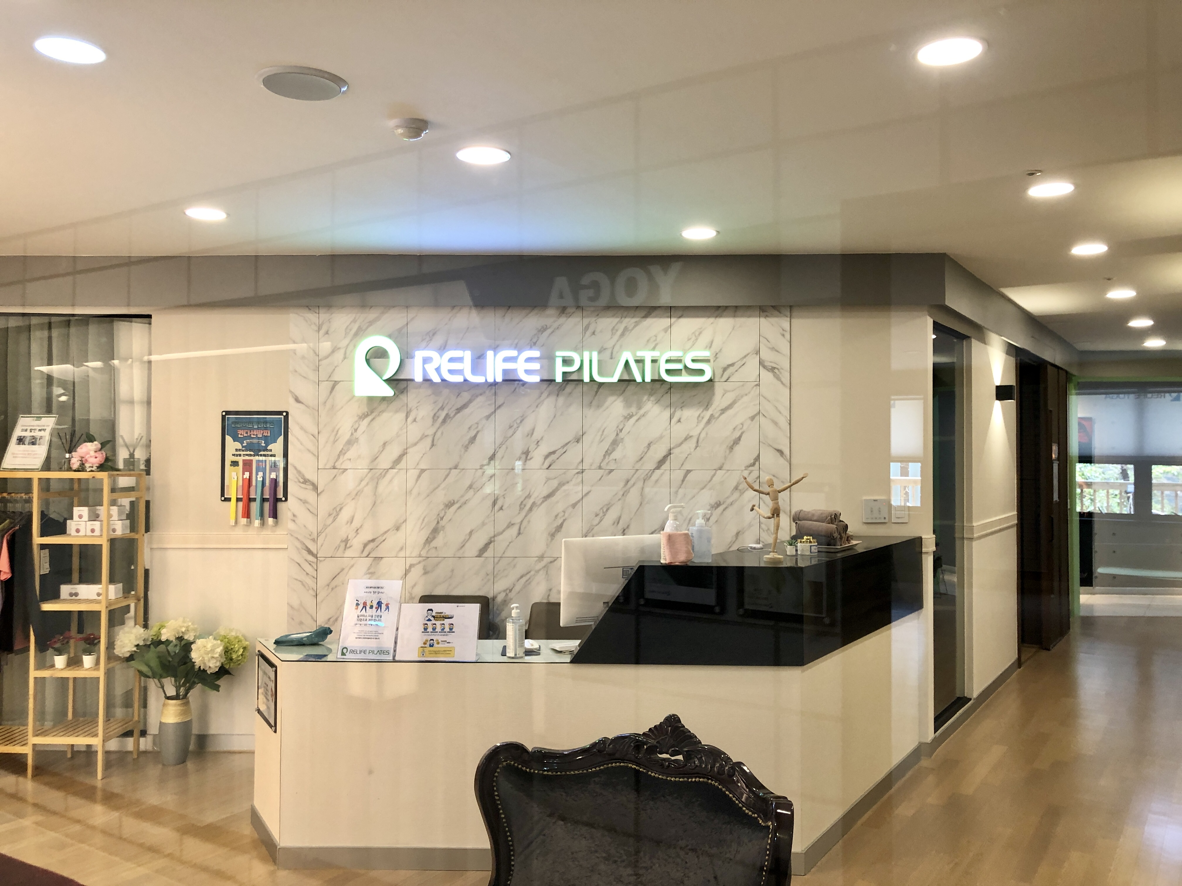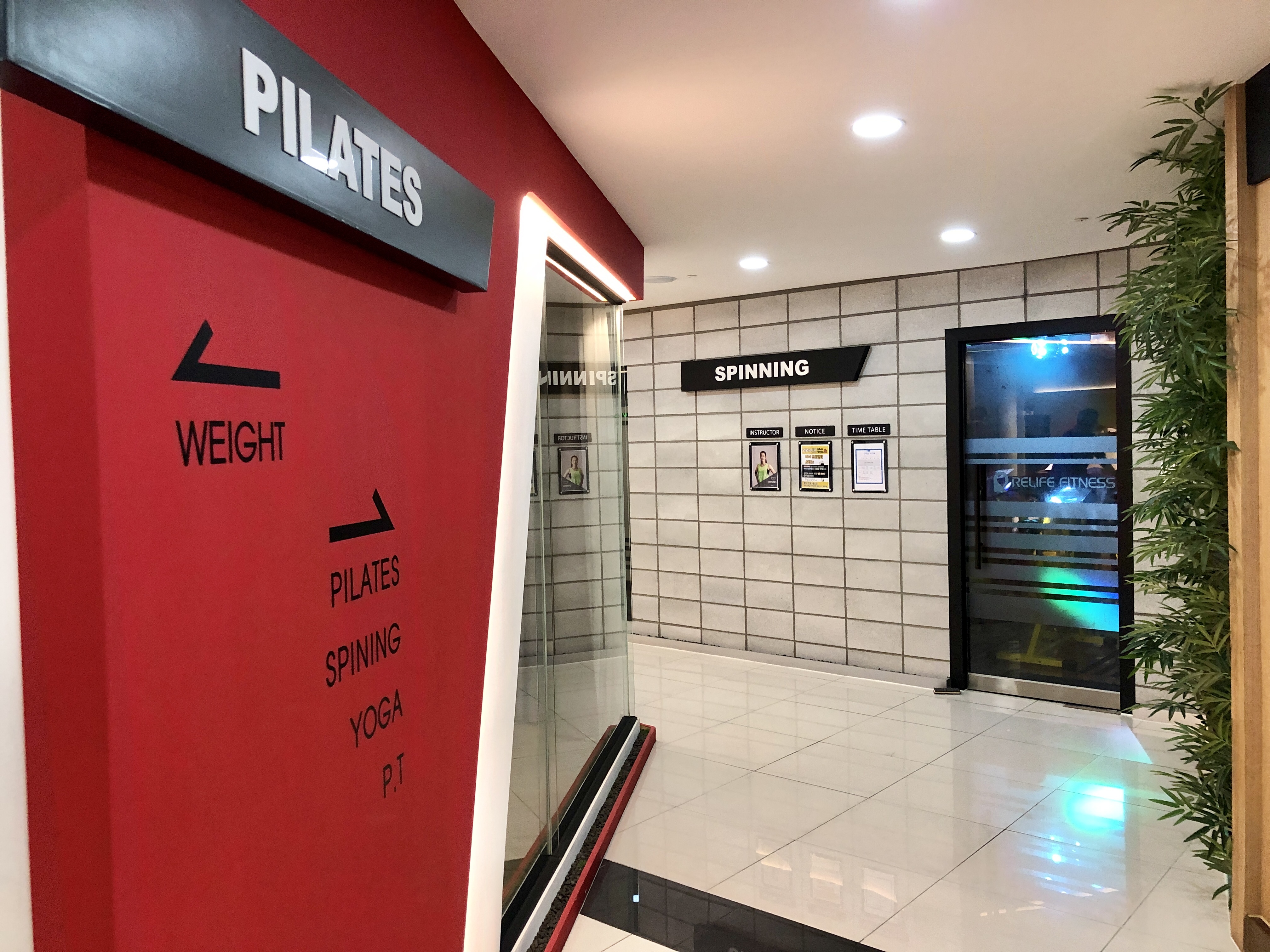 필라테스, 스피닝, 요가, PT와 피트니스 공간을 잘 분리해놓기도 했고 인테리어도 마음에 들었습니다.