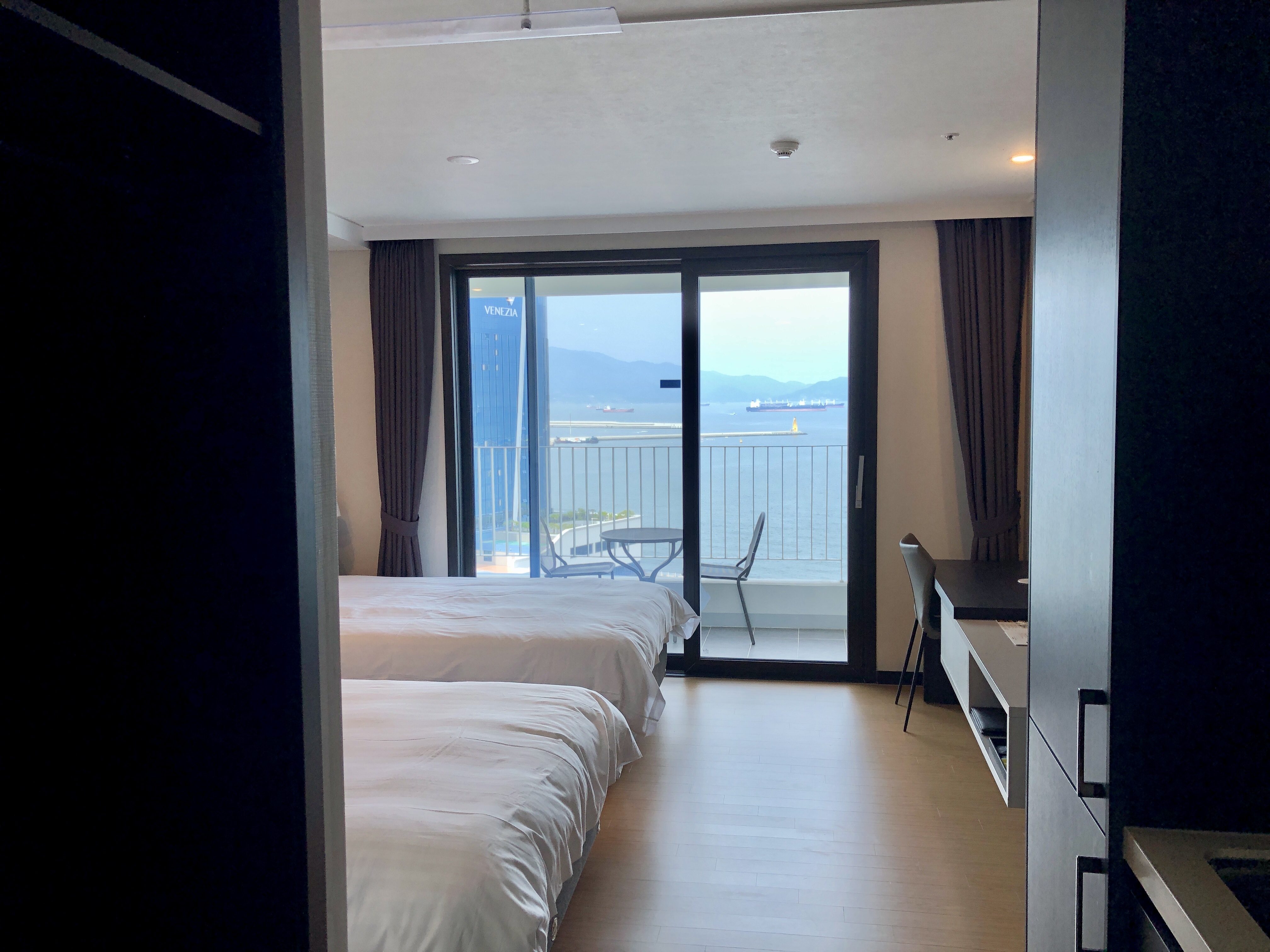 전 객실 바다뷰 답게 베란다를 통해 바로 앞 바다와 오동도뷰를 볼 수 있었습니다.